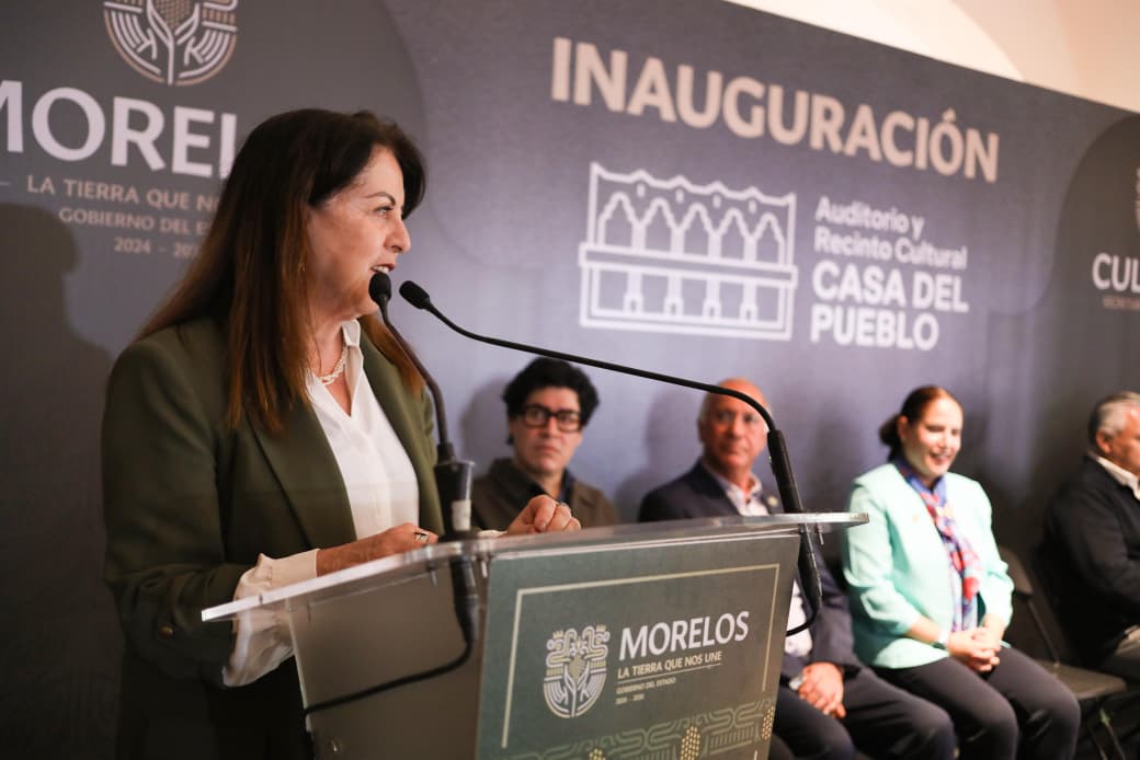 La gobernadora Margarita González Saravia inauguró el Auditorio y Recinto Cultural Casa del Pueblo, ubicado en la antigua sede del Poder Legislativo, en el centro de Cuernavaca, que se convertirá en un espacio clave para el encuentro entre artistas, estudiantes, promotores culturales y la ciudadanía.