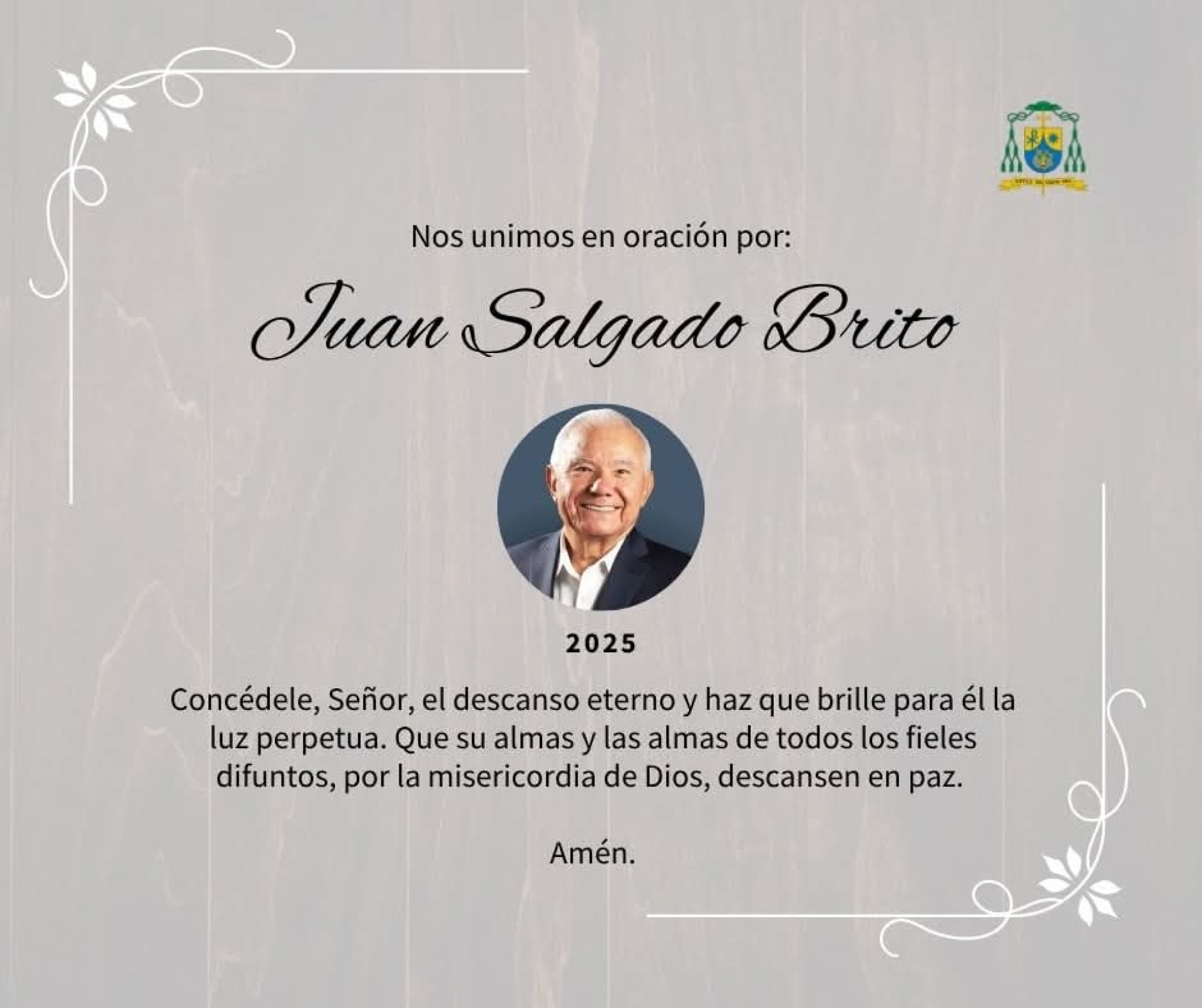En sus redes sociales, escribió: "Expreso mis más sentidas condolencias por el fallecimiento de Juan Salgado. Elevo mi oracion por su eterno descanso y por el consuelo de sus seres queridos. En la fe y la esperanza en Cristo Resucitado hallamos fortaleza y paz".