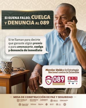 Como parte de la Estrategia Nacional contra la Extorsión impulsada por el Gobierno de México, los integrantes de la Mesa de Coordinación Estatal para la Construcción de Paz y Seguridad en el Estado de Morelos, con el respaldo del Gobierno que dirige Margarita González Saravia, pusieron en marcha la primera campaña estatal para prevenir los diferentes tipos penales de extorsión, informó el titular de la Secretaría de Seguridad y Protección Ciudadana (SSPC), Miguel Ángel Urrutia Lozano.