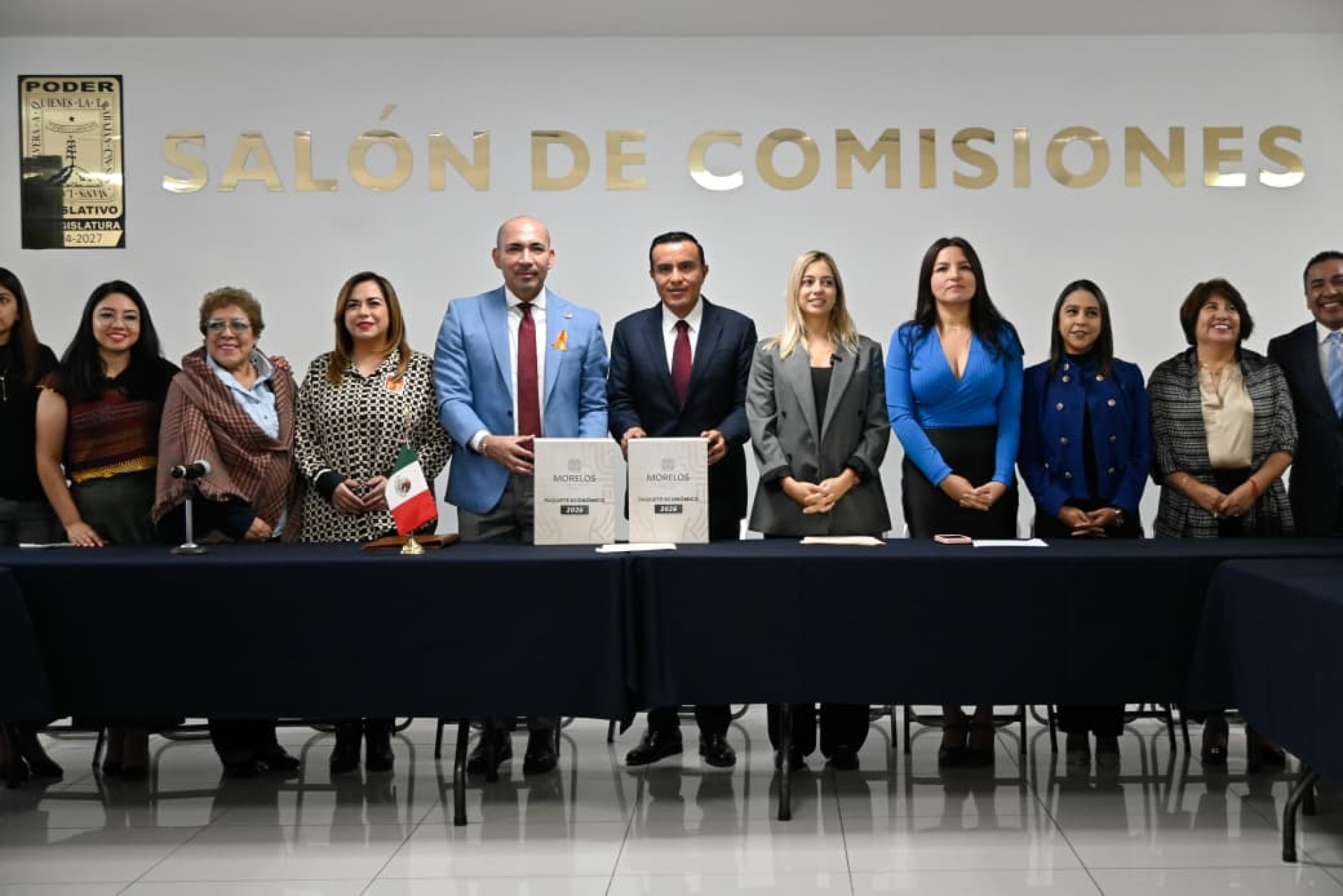Derivado de lo anterior, este jueves, la Secretaría de Administración y Finanzas, mediante su titular Jorge Salazar Acosta, realizó la entrega formal del Paquete Económico 2026 ante las y los integrantes de la LVI Legislatura del Congreso del Estado de Morelos a través de Isaac Pimentel Mejía, presidente de la Mesa Directiva, como parte del mandato constitucional y fortalecimiento del diálogo institucional entre poderes.