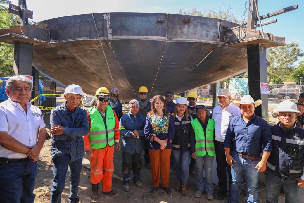 Posteriormente, Margarita González Saravia supervisó la construcción del tanque elevado de acero “La Bola”, obra estratégica que garantizará el suministro de agua potable a nueve mil 542 habitantes de la cabecera municipal de Axochiapan.