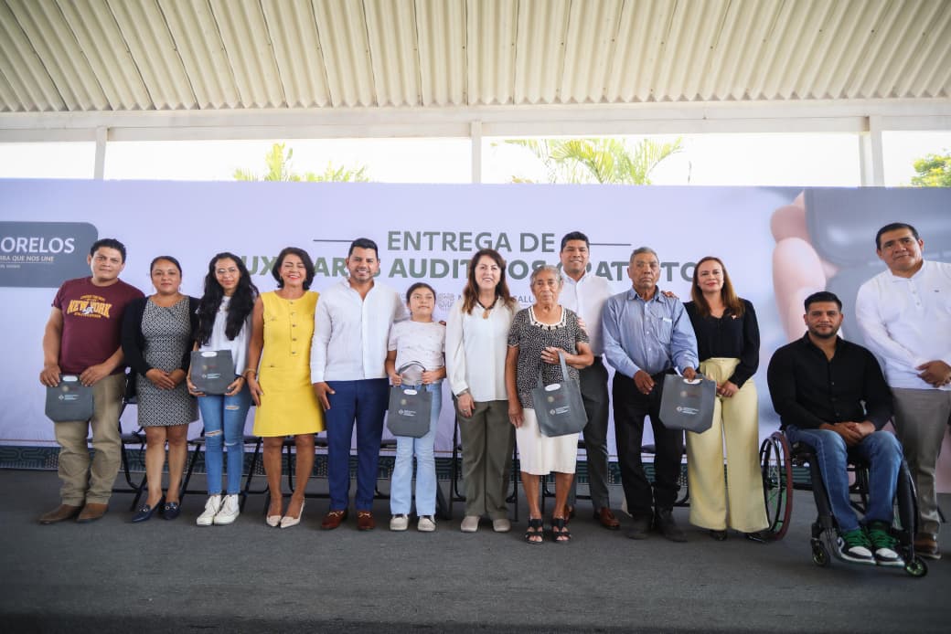 La gobernadora del estado de Morelos, Margarita González Saravia, encabezó la entrega de 448 auxiliares auditivos que permitirán a 224 mujeres y hombres de distintas edades recuperar el sentido del oído. Entre las beneficiarias se encuentra Yuri Mariana Bello Mireles, del municipio de Jiutepec, quien expresó su agradecimiento porque volvió a escuchar “el sonido de la vida”.