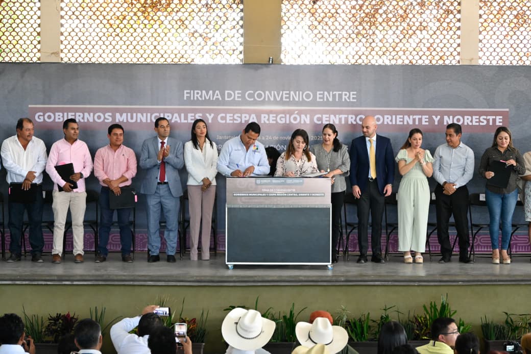 Durante el acto, la gobernadora firmó los convenios de colaboración con las y los alcaldes de Axochiapan, Marco Antonio Cuate Romero; Tetela del Volcán, Esaud Mendoza Solís; Temoac, Valentín Lavín Romero; Tepalcingo, Alfredo Sánchez Vélez; Zacualpan de Amilpas, Marino Santibáñez Alonso; Ayala, Nayeli Guadalupe Mares Mérida; Yecapixtla, Heladio Rafael Sánchez Zavala; y Jantetelco, Ángel Augusto Sánchez Domínguez.