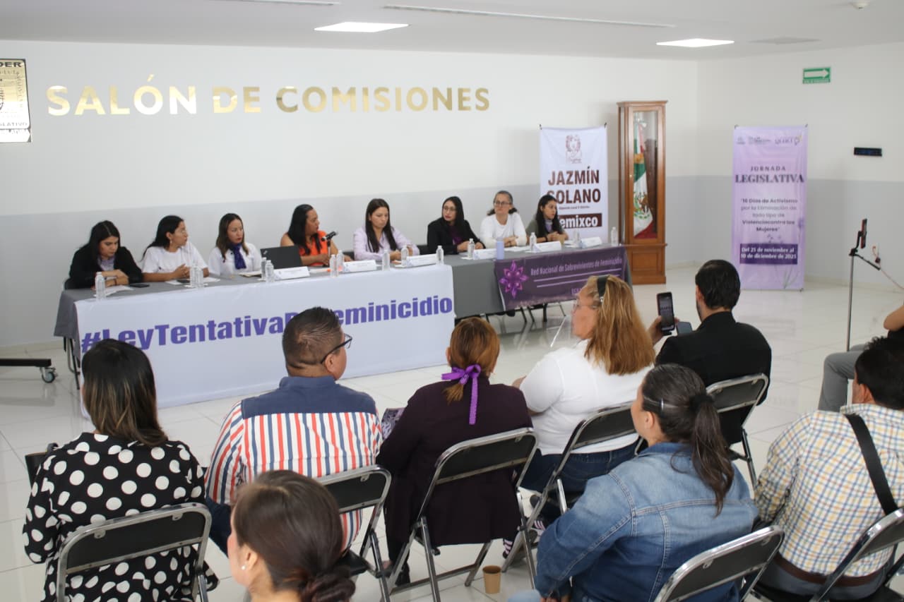 "Que la indiferencia no nos alcance, la dignidad nos sostenga y la memoria nos acompañe", es el lema con el que se llevó a cabo la presentación de la "Ley Tentativa de Feminicidio" en el Congreso del estado, encabezado por la diputada Martha Melissa Montes de Oca Montoya, presidenta de la Comisión de Igualdad de Género, y la diputada Jazmín Solano López, presidenta de la Comisión de Participación Ciudadana y coordinadora del evento.