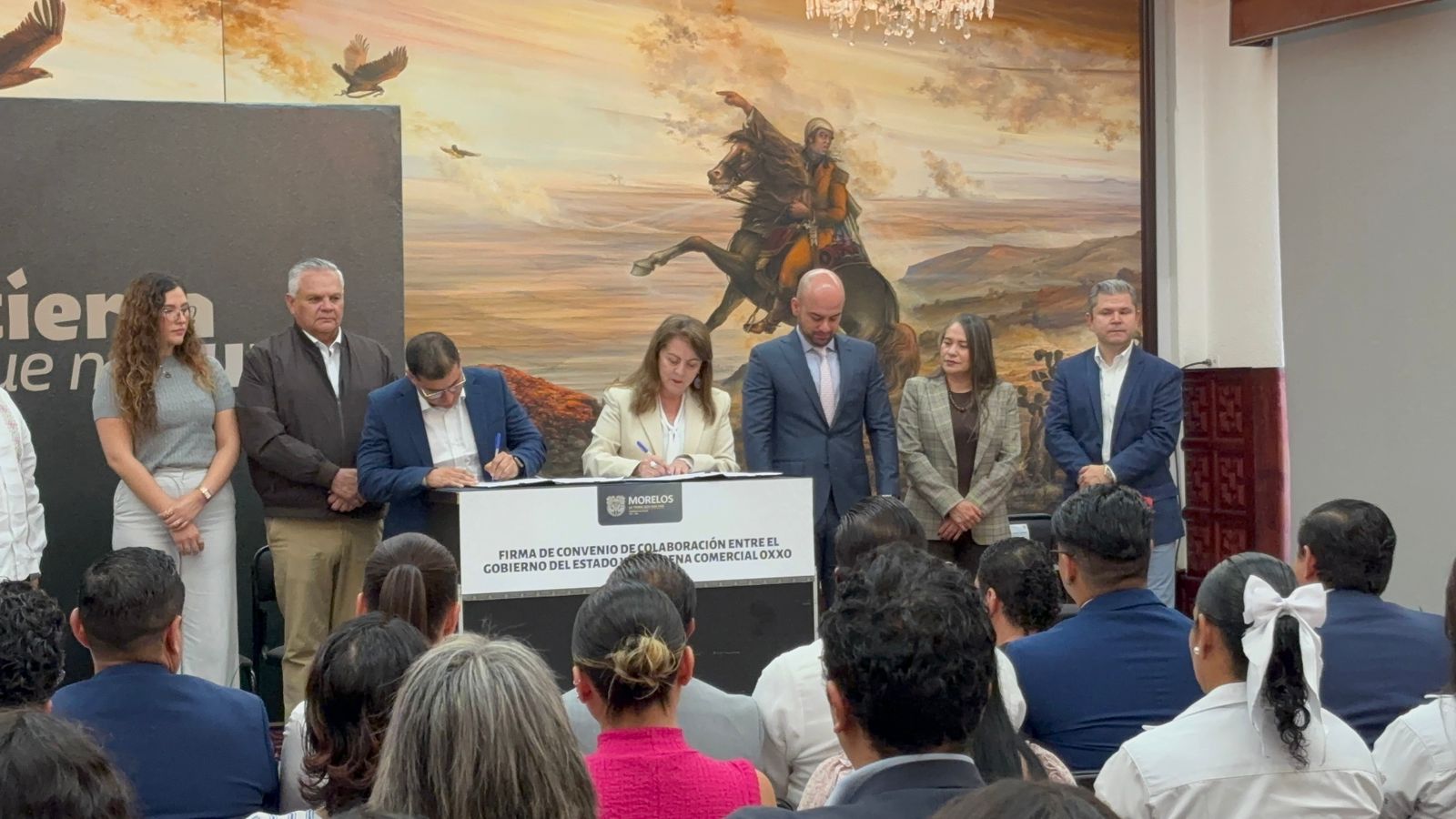 La gobernadora Margarita González Saravia firmó esta tarde un convenio de colaboración con la cadena Oxxo, en materia de seguridad.