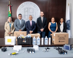 En la reunión de trabajo, los representantes del UNFPA entregaron un donativo de parte del gobierno de Alemania consistente en insumos de equipo de lofoscopia como reveladores para huellas latentes, tinta para huellas, rodillo, aplicadores de metal decadactilares, cojines para huellas, solución salina, glicerina, aplicadores, pluma de marabú y de pelo de camello, kit para materiales, entre otros.