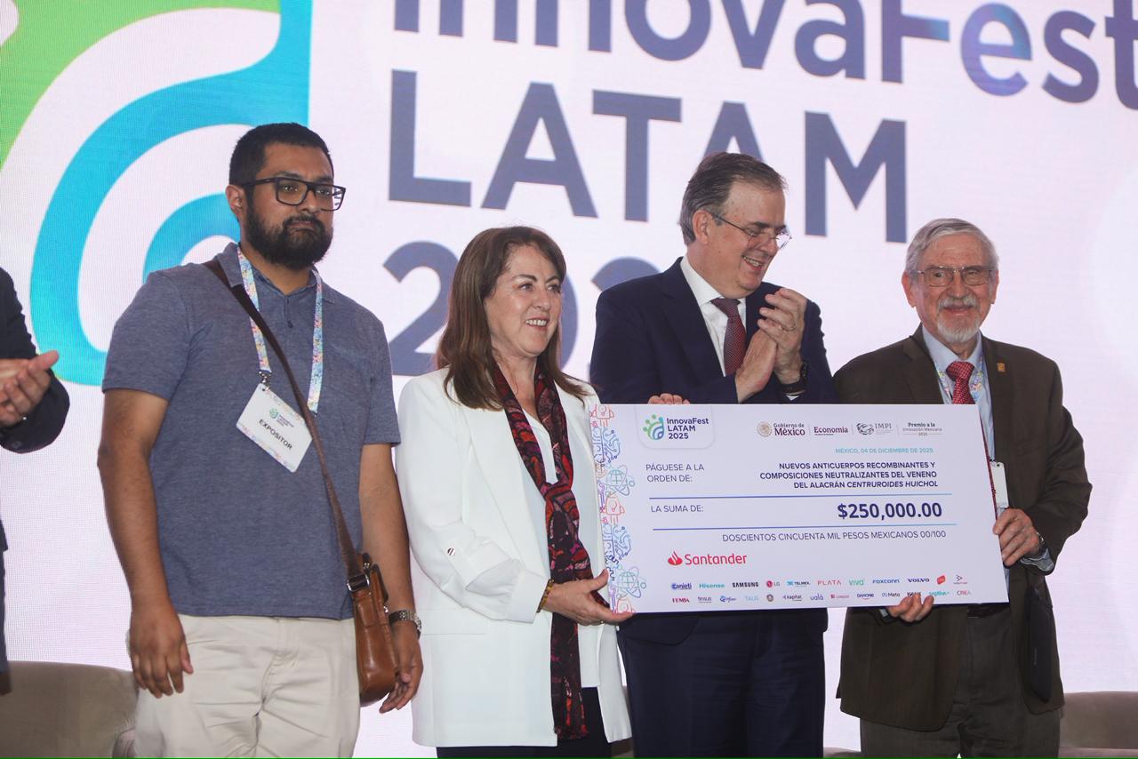 Cabe señalar que, en esta edición se registraron tres mil 763 proyectos en 13 categorías, una participación histórica que refleja el dinamismo creativo del país. Entre los reconocimientos, sobresalió la categoría de Patentes, cuyo proyecto ganador fue desarrollado por la UNAM Campus Morelos: una formulación de anticuerpos recombinantes que neutraliza el veneno del alacrán huichol, con resultados exitosos en pruebas de laboratorio.