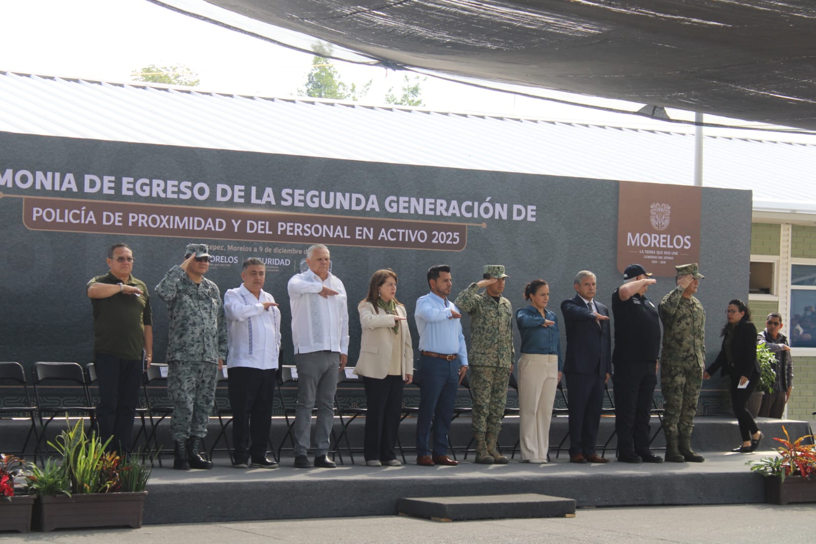 Dicha ceremonia se lleva a cabo en la Academia Estatal de Estudios Superiores en Seguridad Pública, a la cual acuden los alcaldes de Cuernavaca y Xochitepec.