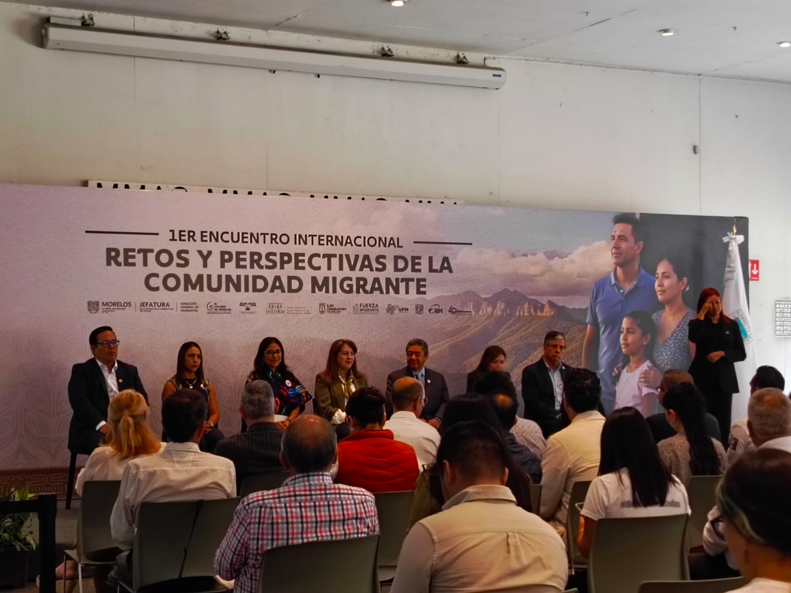 La gobernadora de Morelos, Margarita González Saravia, encabezó la inauguración del Primer Encuentro Internacional “Retos y Perspectivas de la Comunidad Migrante”, acompañada por Verónica Giles Chávez, directora general de Atención a Migrantes en el estado.