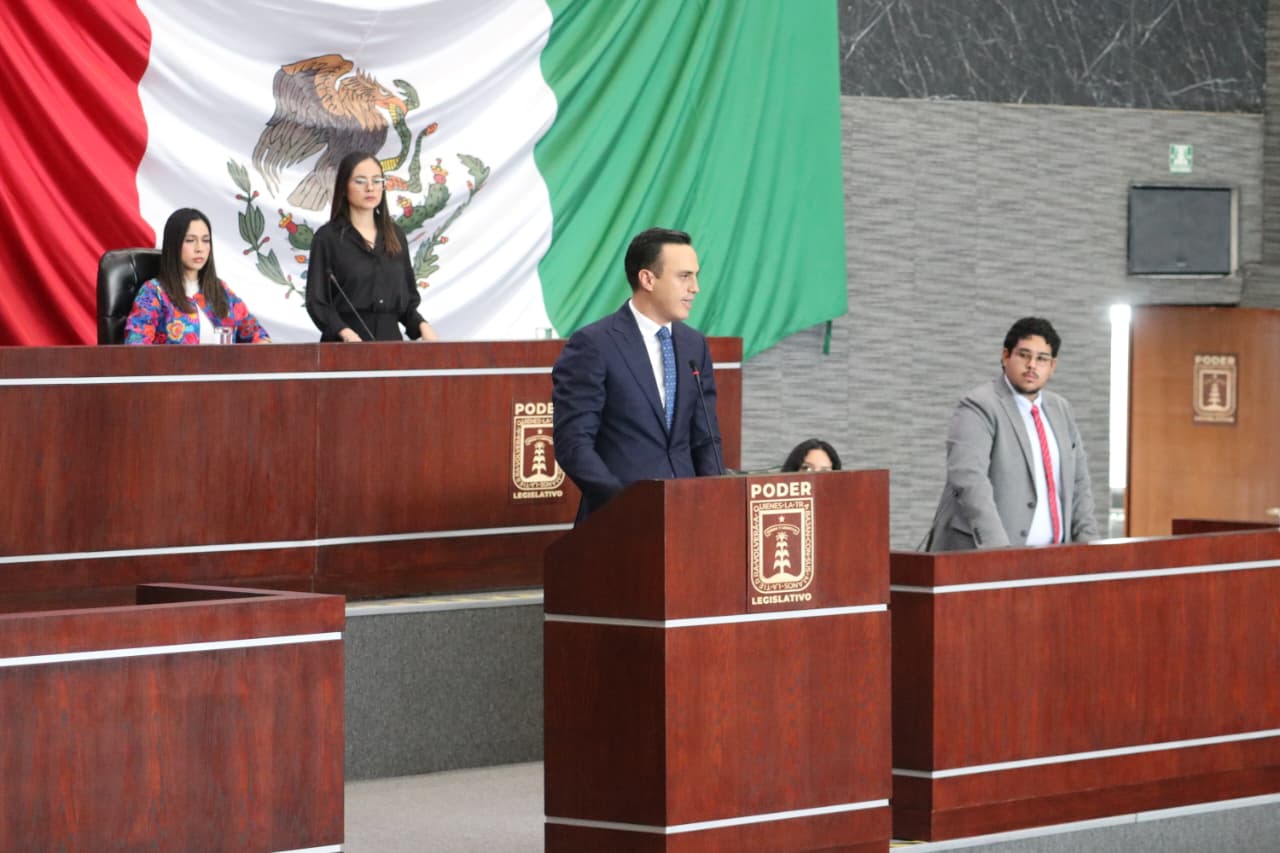 Durante la sesión que tuvo lugar en el salón de Plenos del Congreso del estado, el coordinador del Grupo Parlamentario del Partido Acción Nacional aseguró que la política necesita de los jóvenes, de su visión crítica, su capacidad de organizarse, su sensibilidad social y su claridad para distinguir lo correcto de lo que nunca debió ser permitido: “Necesita su fuerza para romper inercias y para recordar que la función pública solo tiene sentido cuando se pone al servicio de la gente”.