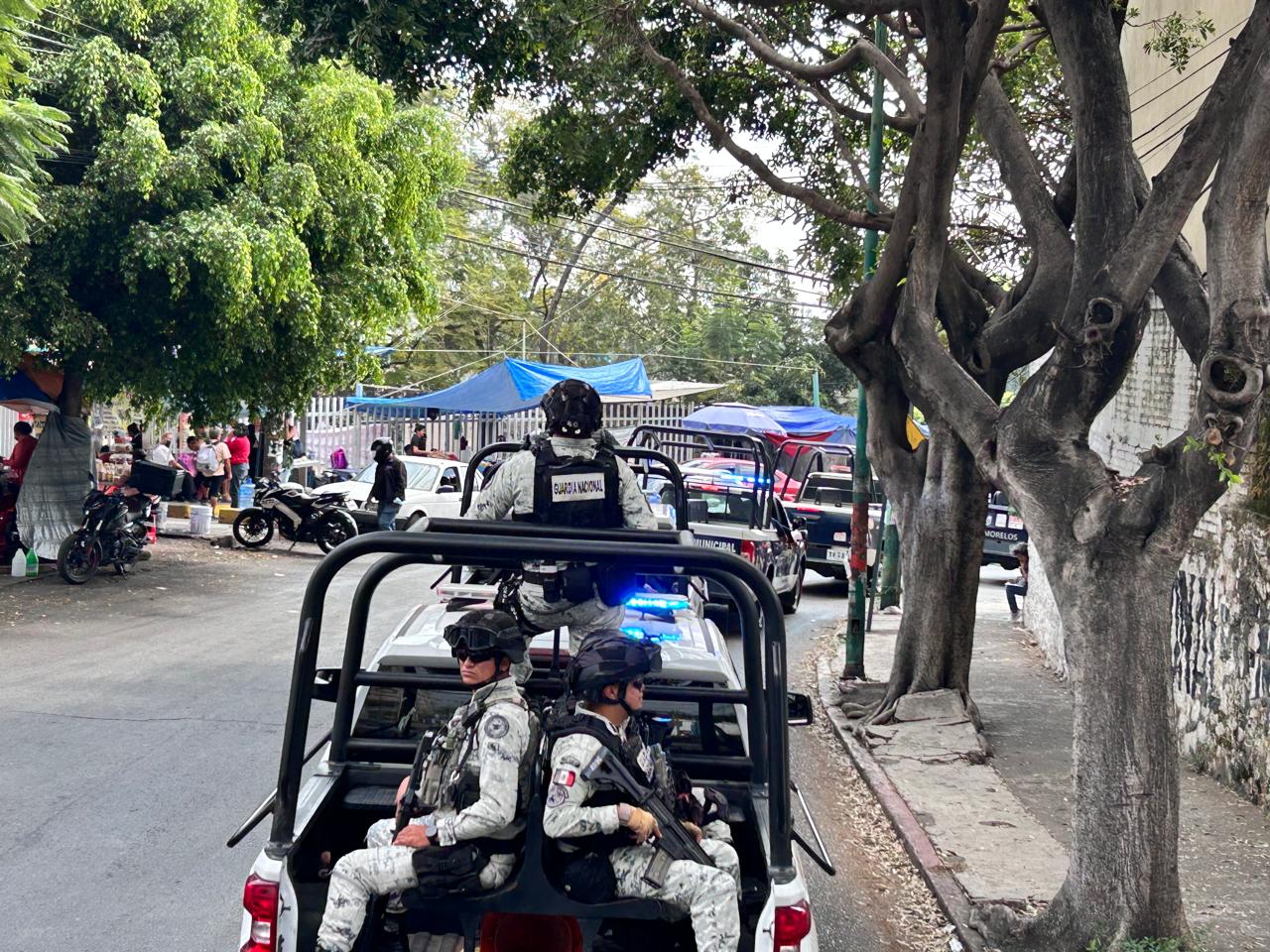 Personal del Ejército Mexicano, Guardia Nacional y policías estatal y municipal de Cuernavaca, de manera conjunta, continuan implementando el Operativo Máxima Presencia, en plazas comerciales, bancos y tiendas de autoservicio de Cuernavaca.