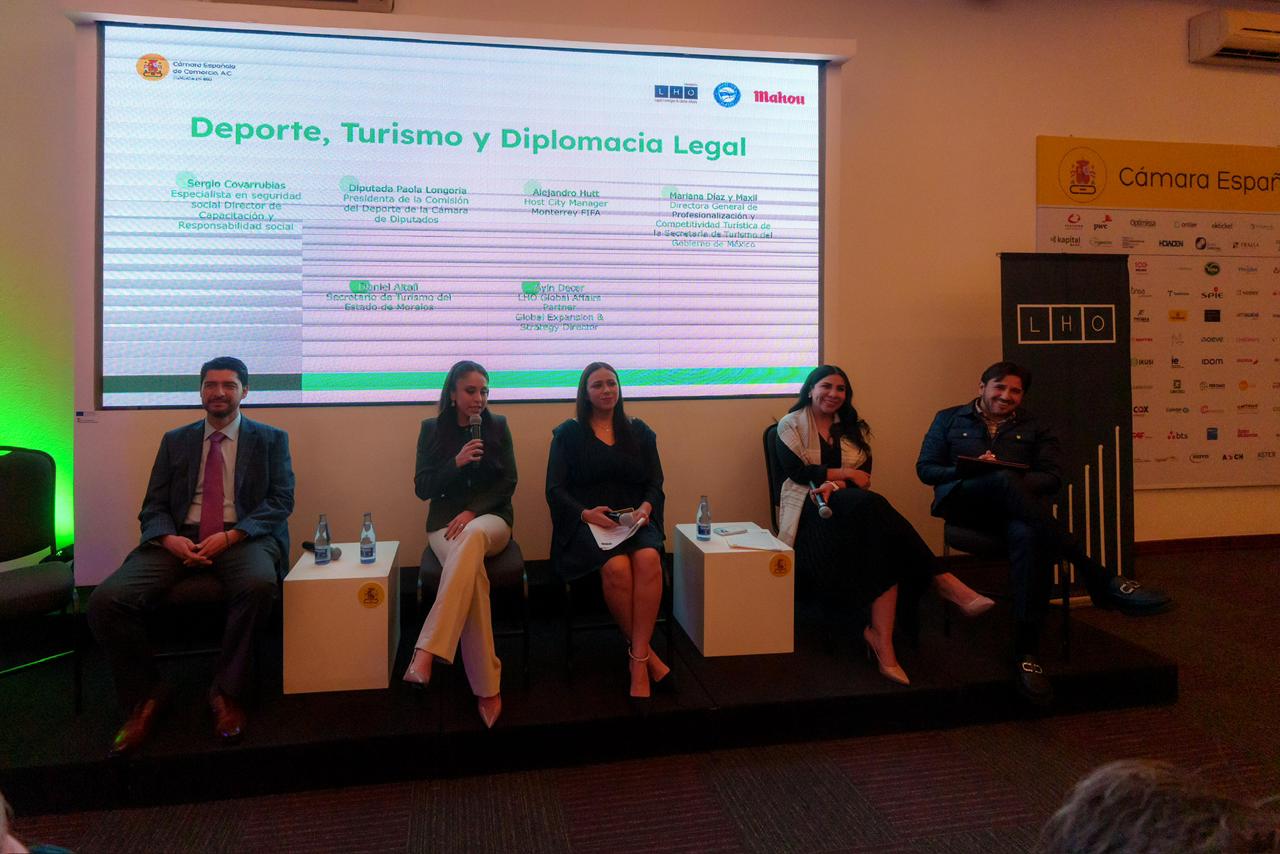 En el encuentro participaron Paola Longoria, diputada presidenta de la Comisión del Deporte de la Cámara de Diputados; Mariana Díaz y Maxil, directora de Competitividad Turística de la Secretaría de Turismo de México; Alejandro Hütt, Host City Manager Monterrey – FIFA World Cup 26; Sergio Covarrubias, especialista en seguridad social y director de Capacitación y Responsabilidad Social; así como Daniel Altafi Valladares, secretario de Turismo de Morelos. La moderación estuvo a cargo de Ayin Decer, Partner Global Affairs LHO.