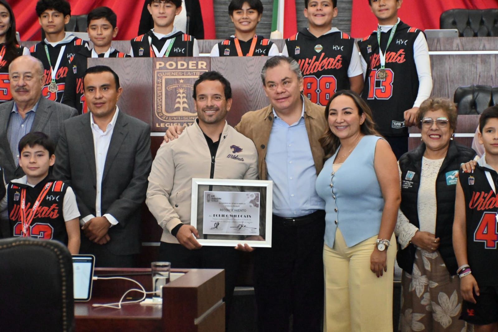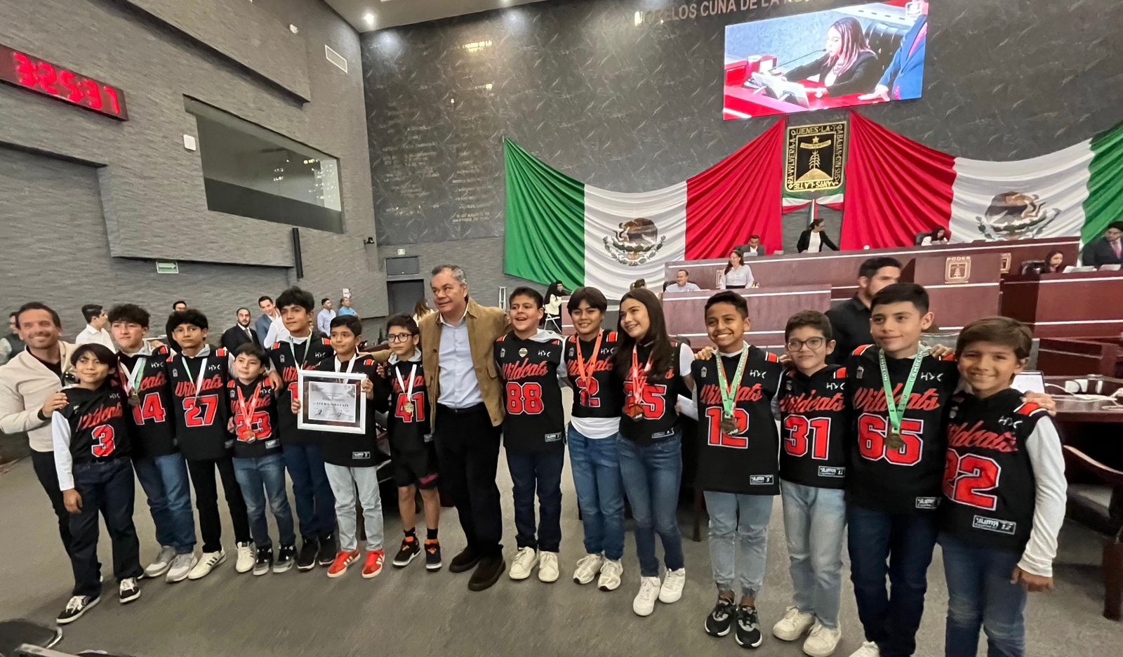 A iniciativa del coordinador del grupo parlamentario de Morena, Rafael Reyes, los integrantes del Congreso del estado reconocieron al equipo de flag football Wildcats Cuernavaca, campeones nacionales en las ramas varonil y mixto de los torneos de futbol bandera efectuados en días recientes en el Estado de México y Jalisco, respectivamente.