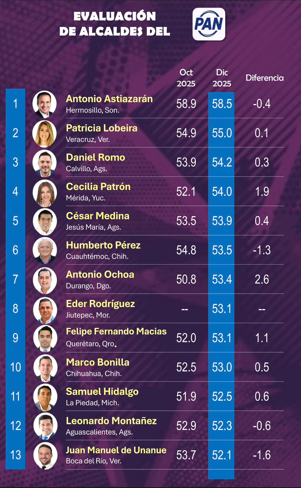 Además, el edil de Jiutepec se encuentra en el número ocho de la lista de alcaldes del Partido Acción Nacional (PAN) mejor posicionados a nivel nacional.