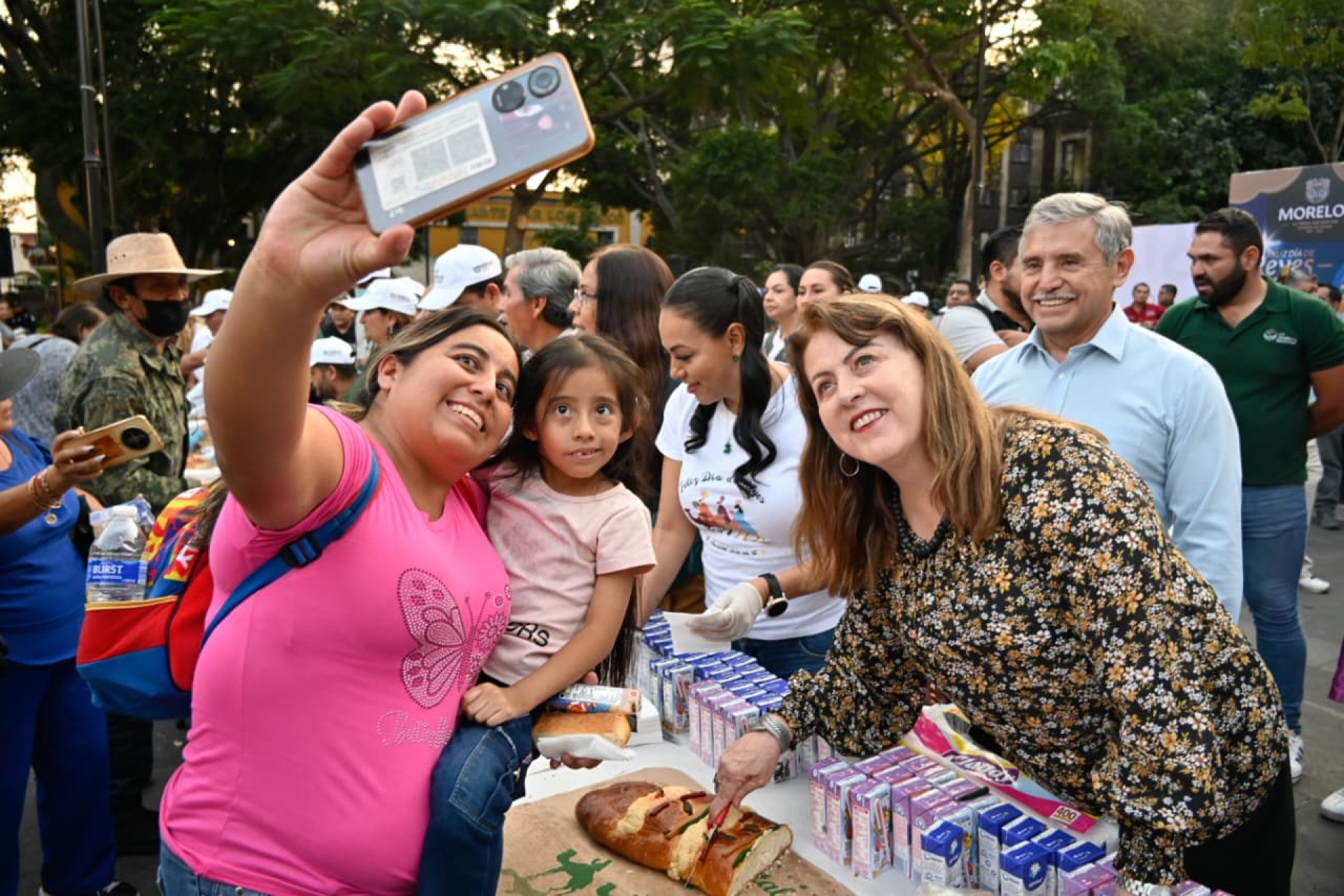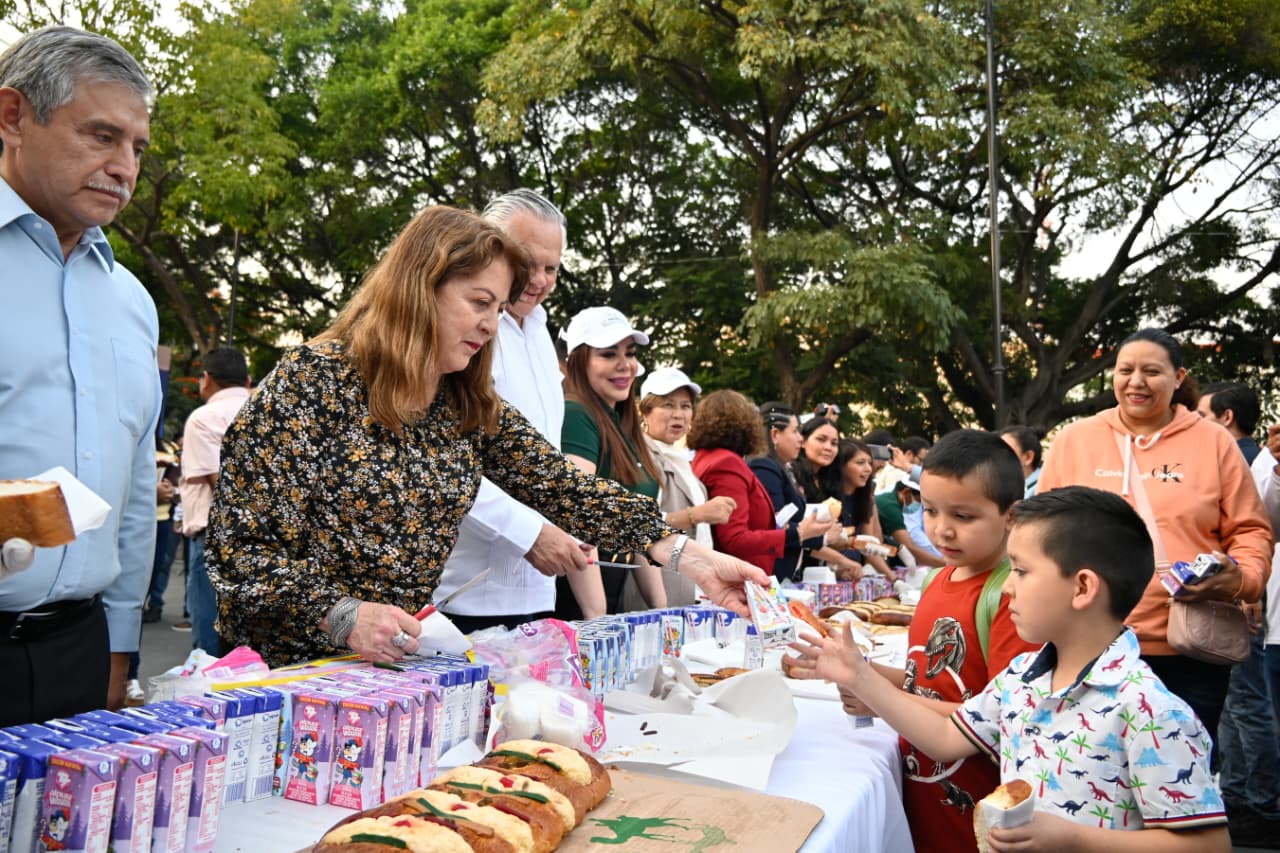 En el marco de la celebración del Día de Reyes Magos, la gobernadora Margarita González Saravia encabezó la conmemoración con el corte de la rosca en la plaza de armas "General Emiliano Zapata Salazar", en el centro de Cuernavaca, donde cientos de familias se dieron cita para compartir esta significativa tradición.