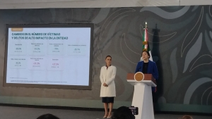Durante la denominada “conferencia del pueblo”, la mandataria federal detalló que esta disminución equivale, en promedio, a 34 homicidios menos por día, lo que coloca al país en su nivel más bajo de violencia homicida desde el año 2016.