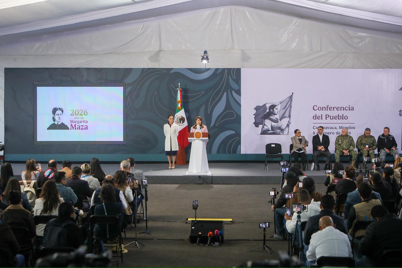 La gobernadora Margarita González Saravia recibió a la Presidenta de México, Claudia Sheinbaum Pardo, quien dio inicio en Morelos a las conferencias mañaneras itinerantes en las entidades del país, como parte de una estrategia nacional orientada a evaluar las condiciones regionales en materia de seguridad pública.