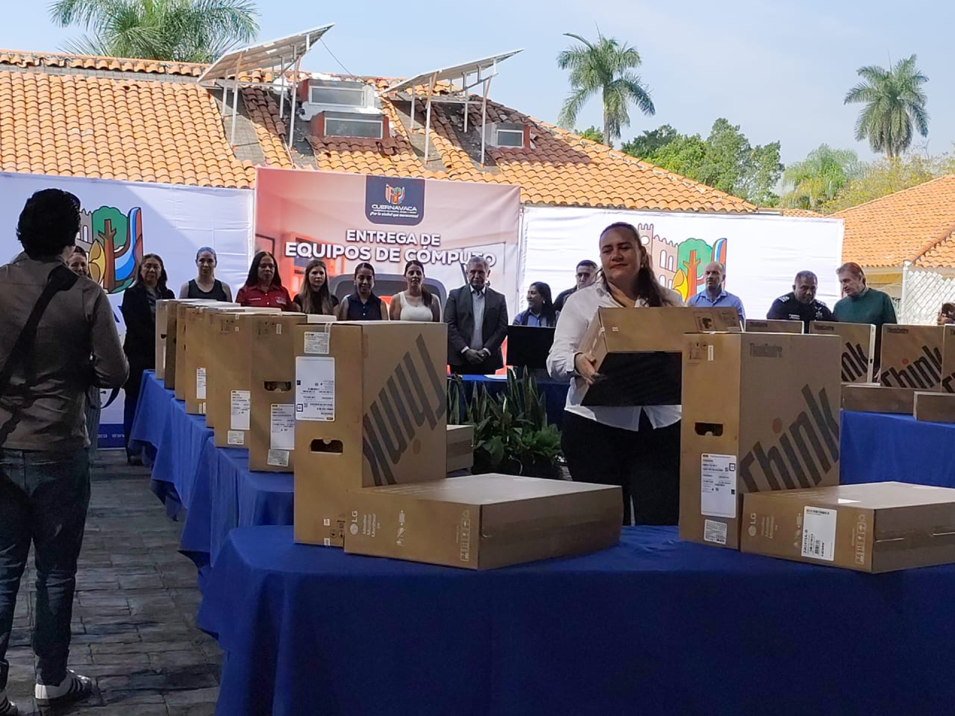 Este viernes, el presidente municipal de Cuernavaca, José Luis Urióstegui Salgado, encabezó la entrega de equipos de cómputo a diferentes áreas del ayuntamiento; detalló que son 164 equipos, con una inversión de cuatro millones de pesos.