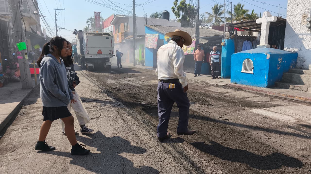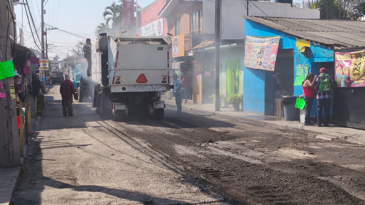 Este sábado se llevan a cabo trabajos de reencarpetamiento en la avenida Benito Juárez del centro de Jiutepec.