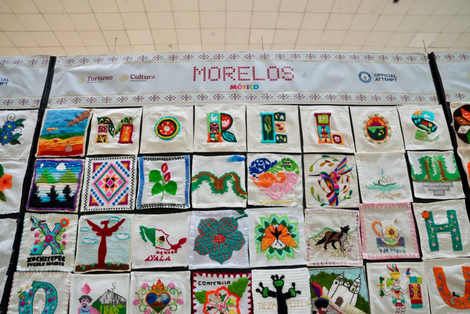 El Gobierno del Estado de Morelos participó en la iniciativa nacional “La Exposición de Bordados y Tejidos más Grande del Mundo”, impulsada por la Secretaría de Turismo del Gobierno de México, la cual logró establecer un Récord Guinness tras la validación de tres mil 106 piezas artesanales provenientes de las 32 entidades del país, en el Complejo Cultural Los Pinos.