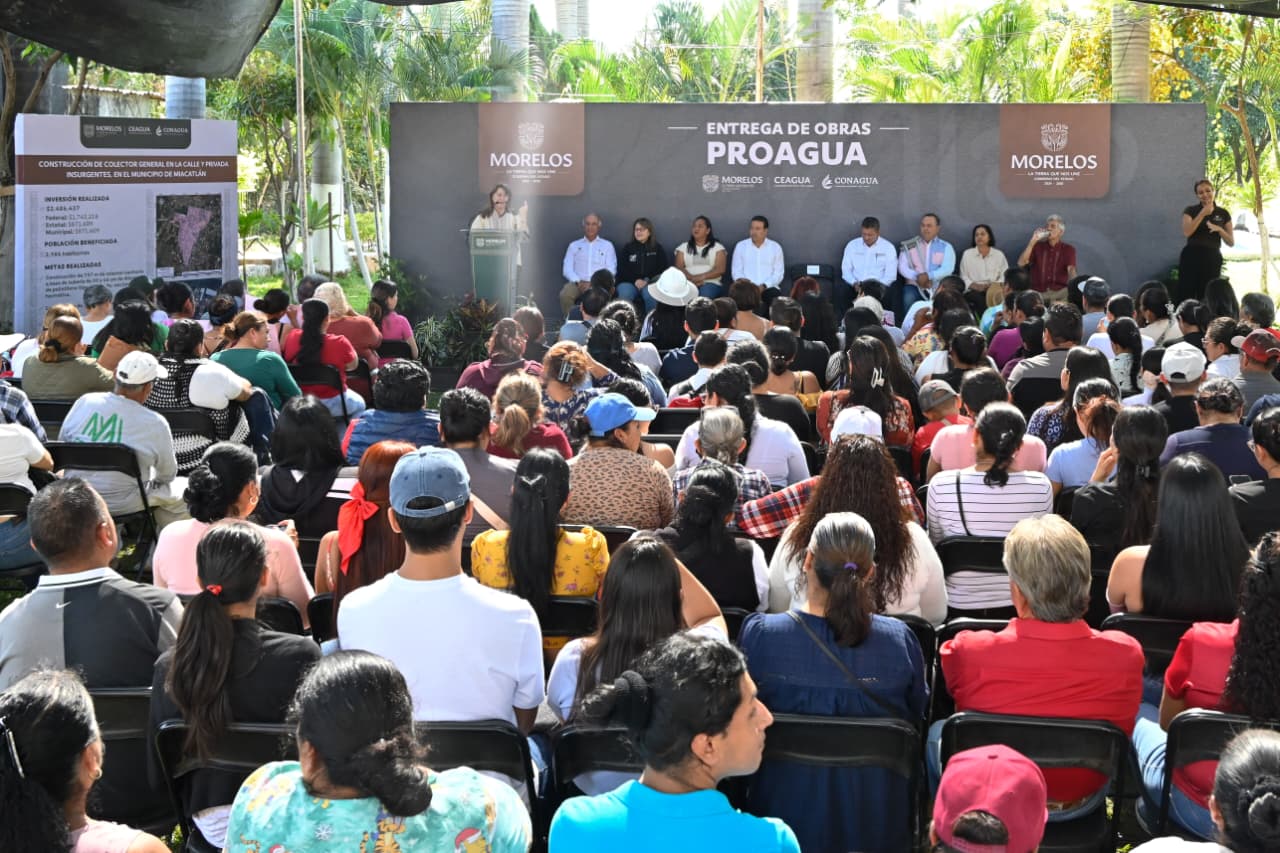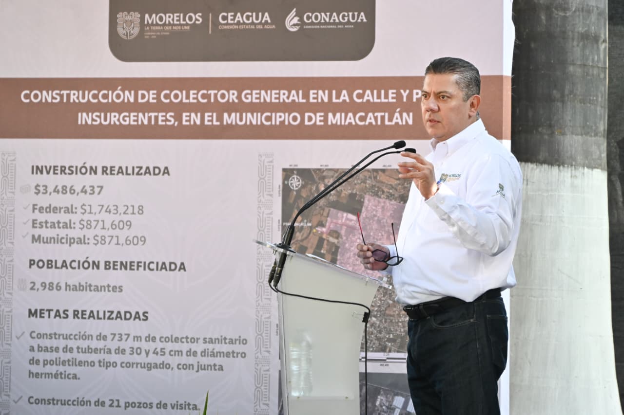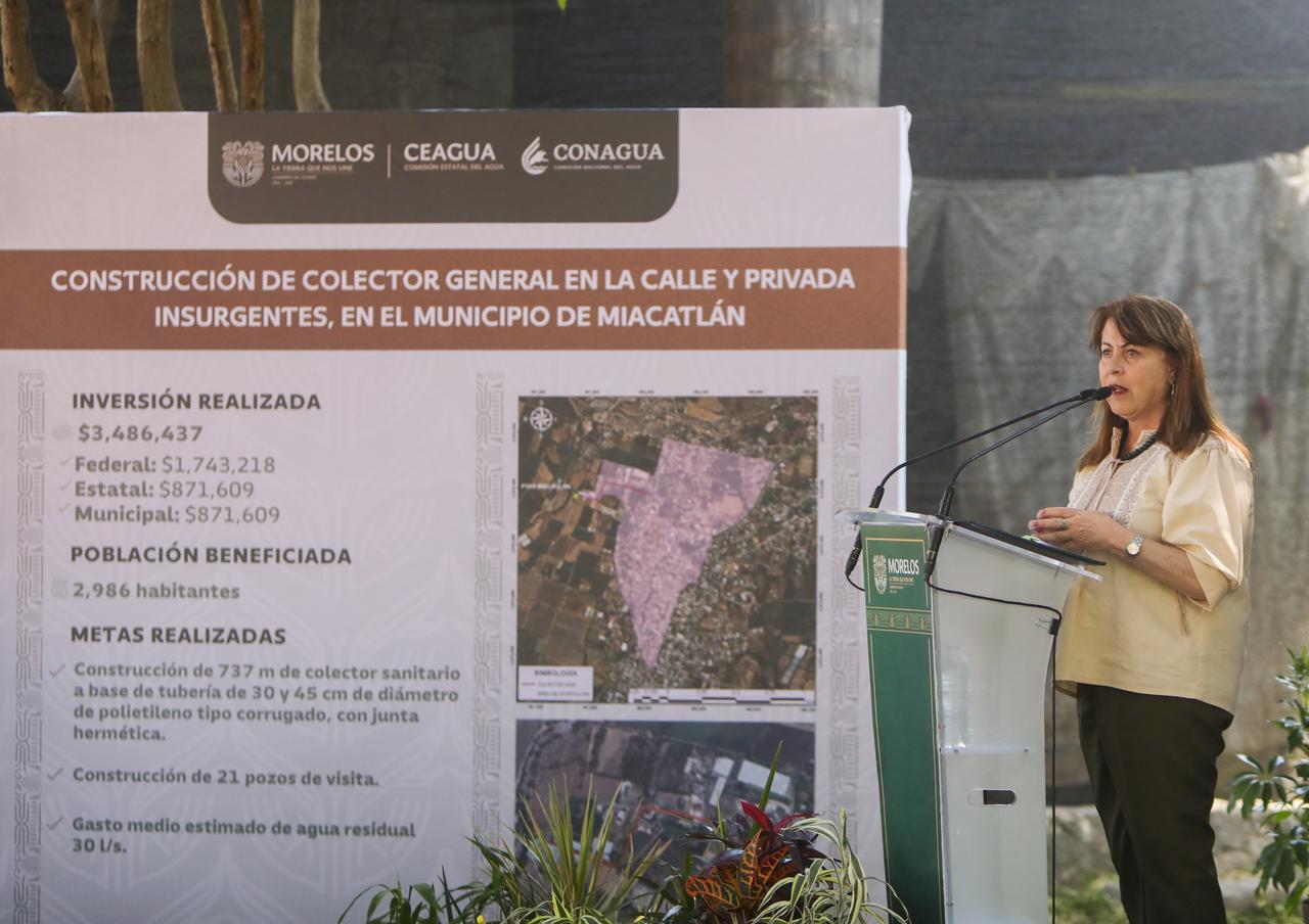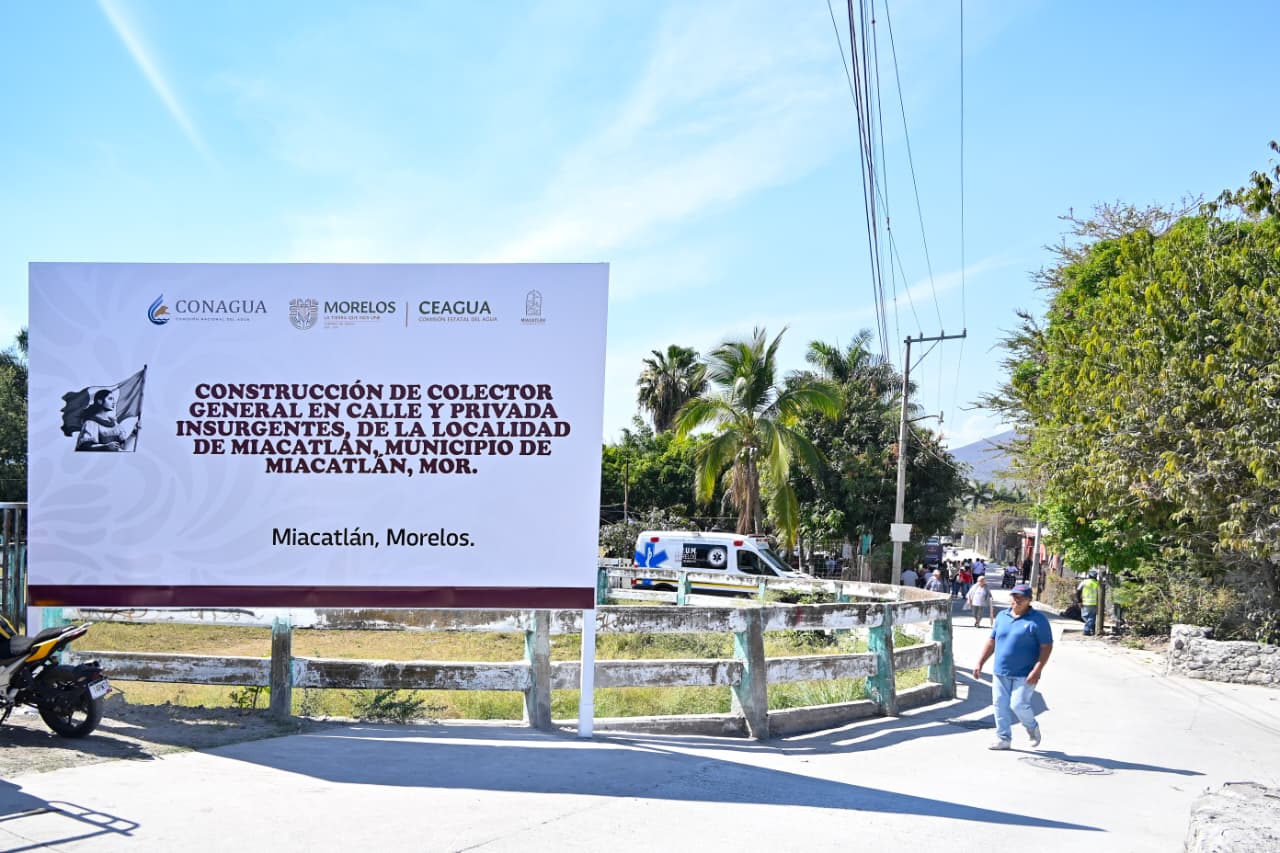 En el municipio de Miacatlán, la titular del Poder Ejecutivo estatal inauguró un colector general de aguas residuales en la calle y privada Insurgentes de la colonia Centro, infraestructura que permitirá conducir gran parte de las descargas generadas en la demarcación hacia una planta de tratamiento, lo que fortalecerá el cuidado ambiental y la salud pública.