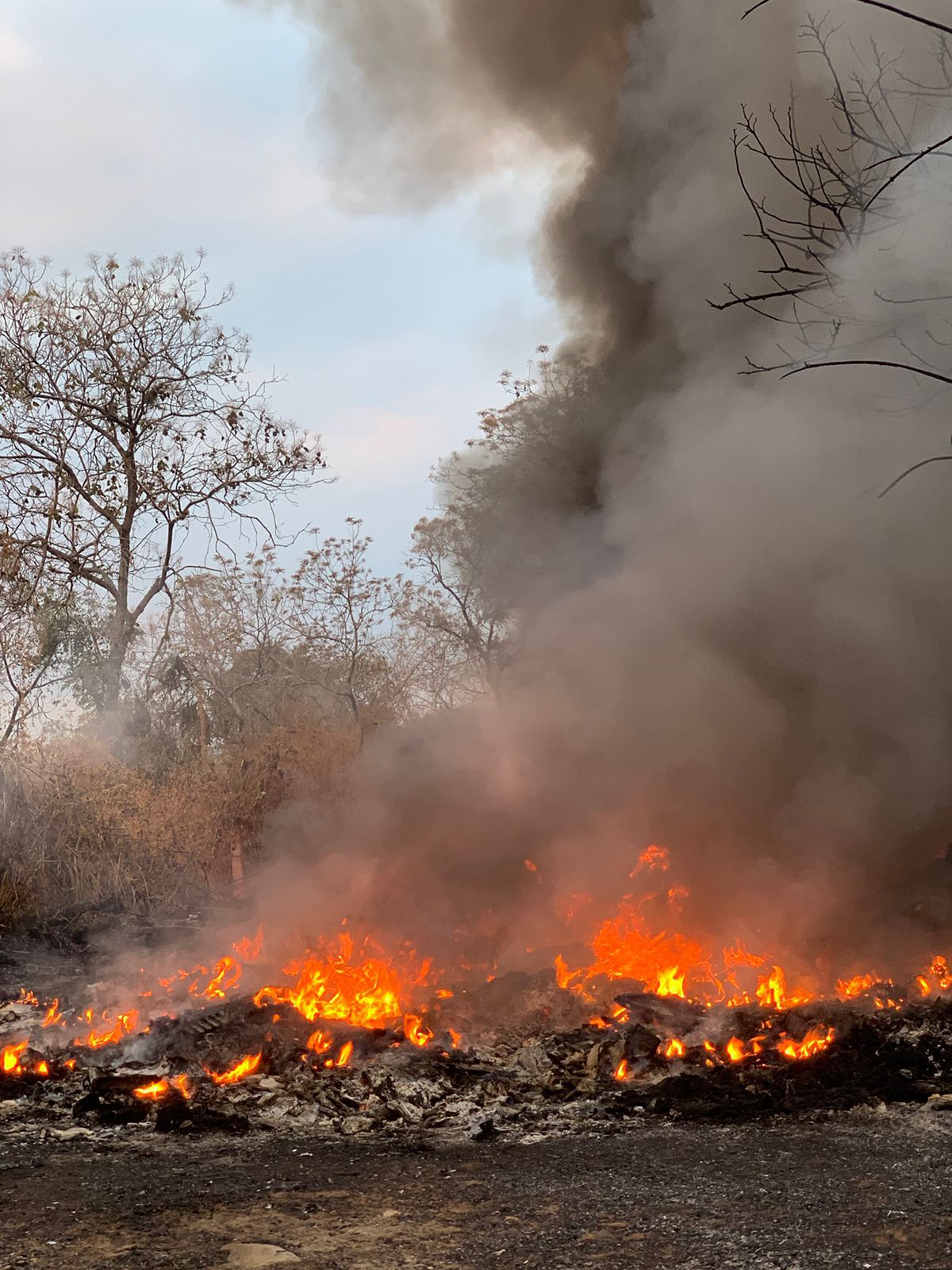 El primer incendio se produjo por la quema de basura, en un predio ubicado en el camino a Los Pinos que se ocupaba como corralón; personal del ayuntamiento, Procivac y Protección Civil estatal laboraron para controlarlo y sofocarlo.
