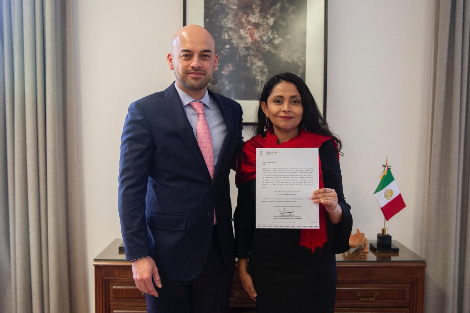 En la Dirección General de Derechos Humanos estará Andrea Acevedo García, Licenciada en Derecho, feminista, defensora de derechos humanos, destaca su trabajo en la creación de diversas Colectivas y Asociaciones Civiles como: Colectivo Divulvadoras en 2015, Red Violeta Morelos en 2017, Calle Sin Acoso Morelos 2014, la Campaña Aborto Legal Morelos 2022 y el colectivo Vida para todas 2025, entre otras.