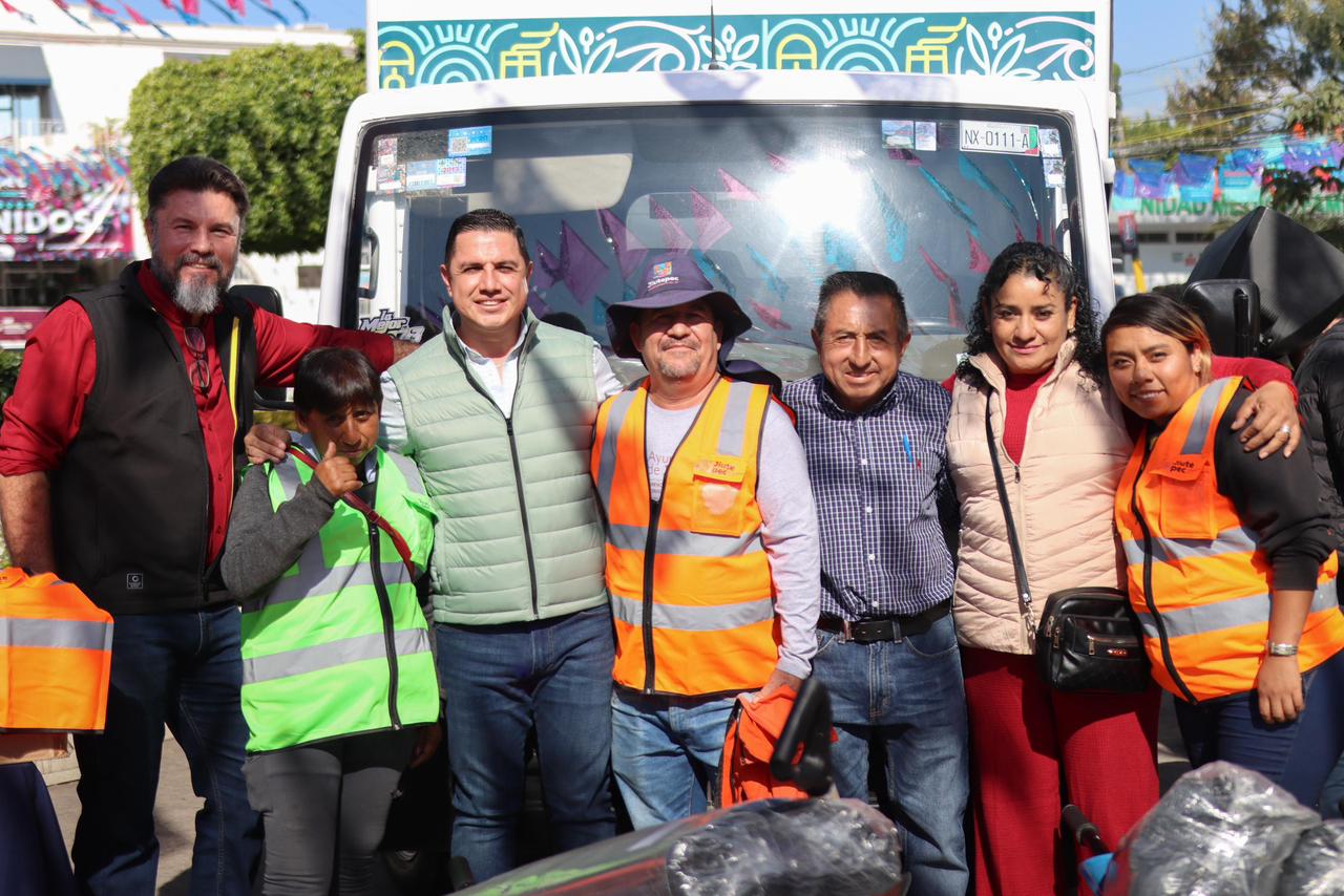 Con una inversión de aproximadamente 300 mil pesos, se entregaron botes de basura, chalecos de seguridad, palas, carretillas, escobas, candados, cadenas, bolsas de basura, guantes de carnaza y malla sombra para mejorar la operatividad del personal.