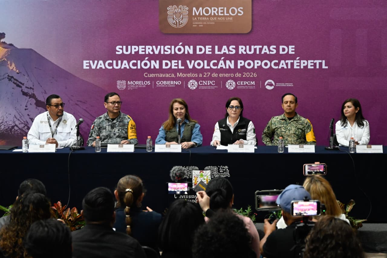 El anuncio se realizó en el Gimnasio Auditorio de la Universidad Autónoma del Estado de Morelos (UAEM) Campus Chamilpa, recinto designado como refugio temporal en caso de evacuación. Previamente, las autoridades recorrieron la Ruta de Evacuación número 2 Tetela del Volcán–Cuernavaca, donde verificaron condiciones físicas, señalización, conectividad vial y seguridad.