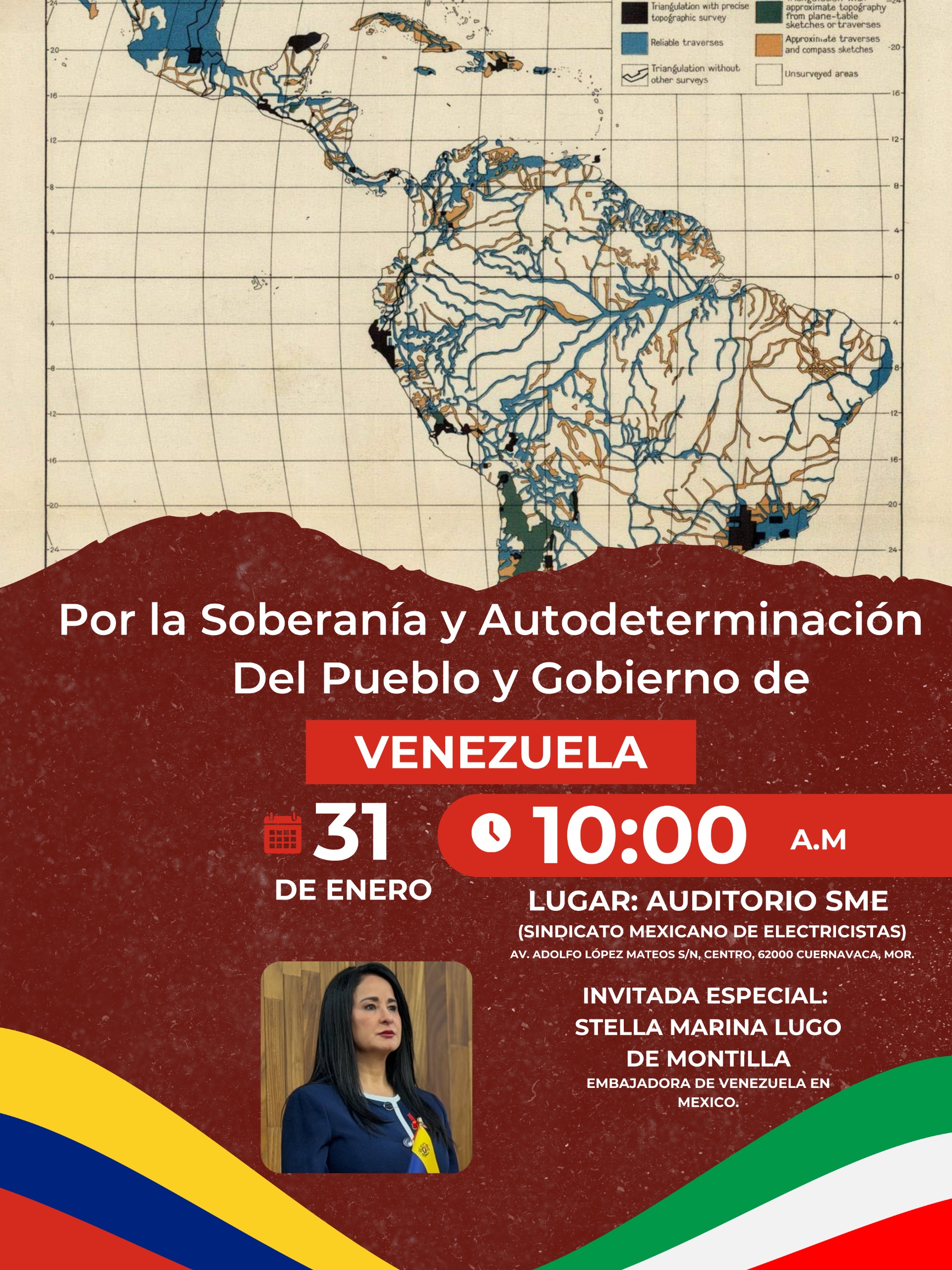 En este sentido, Carmelo Enríquez informó que la conferencia se llevará a cabo el 31 de enero, a las 10:00 horas, en el auditorio del Sindicato Mexicano de Electricistas (SME) en Cuernavaca; señaló que este encuentro reunirá a organizaciones sociales, especialistas, estudiantes y público interesado en conocer de manera directa y documentada la realidad venezolana.
