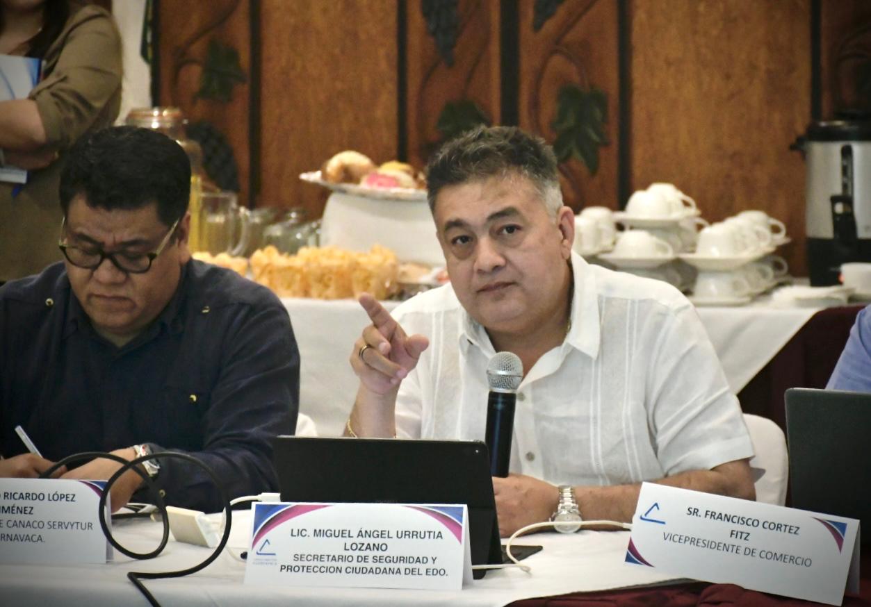 El titular de la Secretaría de Seguridad y Seguridad y Protección Ciudadana (SSPC) Morelos, Miguel Ángel Urrutia Lozano, presentó los avances y proyectos de la Estrategia Estatal de Seguridad Pública ante la Cámara Nacional de Comercio, Servicios y Turismo (Canaco-Servytur) de Cuernavaca, quienes refrendaron su confianza a esta acción que impulsa la administración de la gobernadora Margarita González Saravia.
