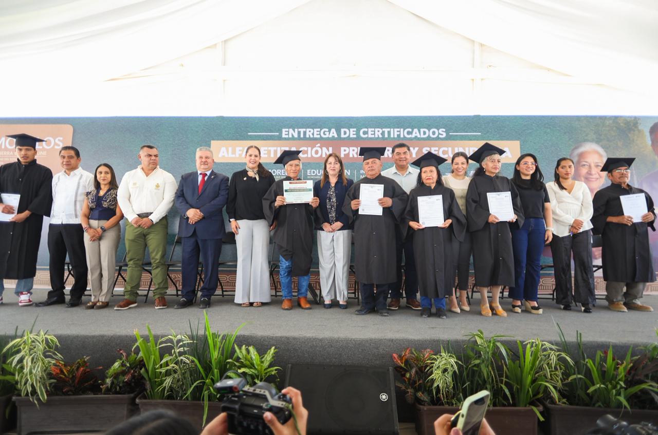 Con el propósito de reducir el rezago educativo en la entidad, la gobernadora Margarita González Saravia entregó mil 269 constancias y certificados a personas mayores de 15 años que concluyeron su proceso de alfabetización, primaria o secundaria mediante el programa AlfabetizaTec, implementado por el Instituto Estatal de Educación para Adultos (INEEA) Morelos en coordinación con el Instituto Tecnológico de Cuautla (ITC) y el Instituto Tecnológico de Zacatepec (ITZ).