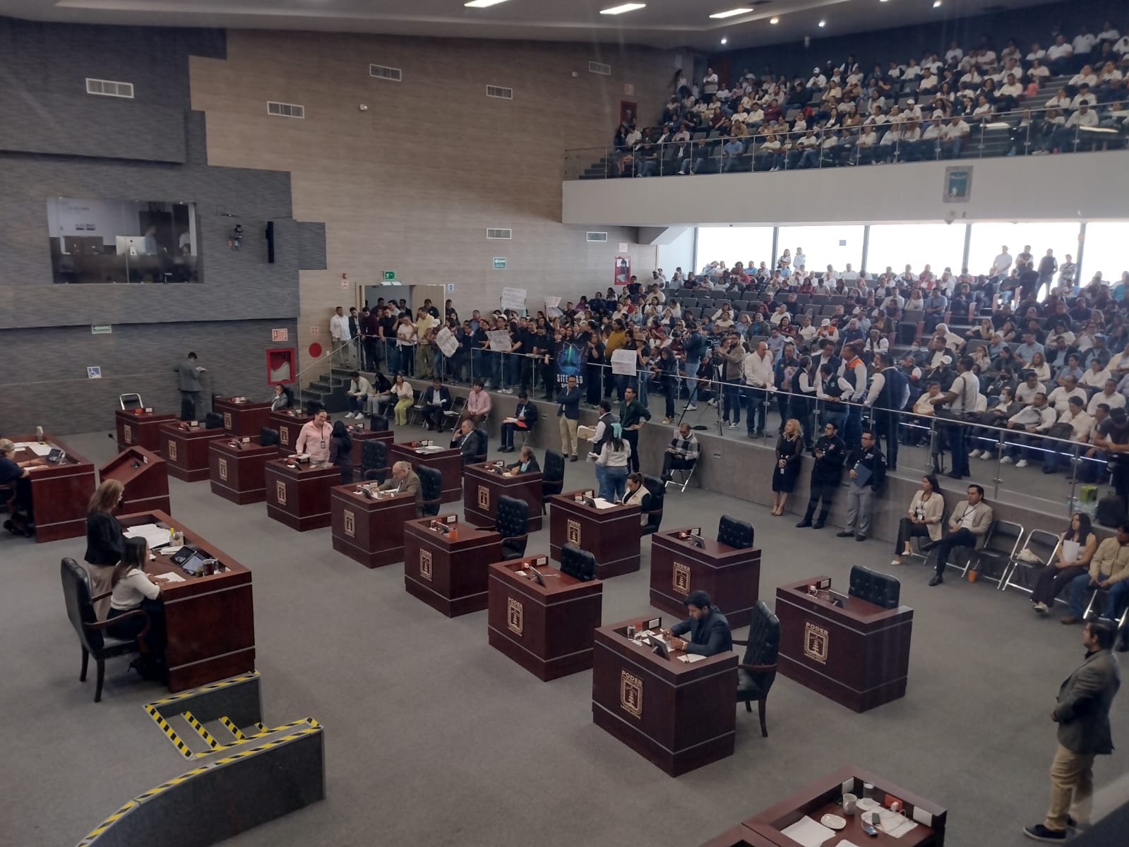 Los profesores manifestaron que su presencia en el recinto legislativo tiene como objetivo vigilar el proceso legislativo y reiterar su exigencia de que ambas disposiciones sean atendidas con responsabilidad y prontitud por las y los diputados locales.