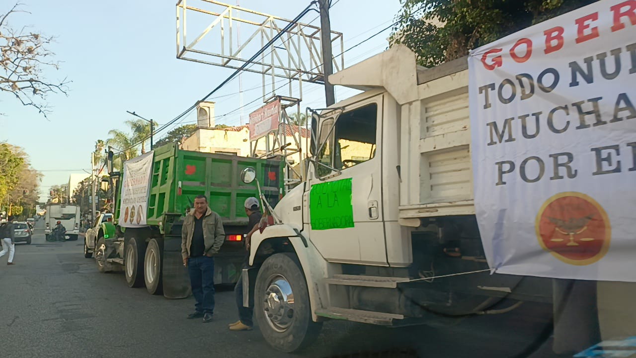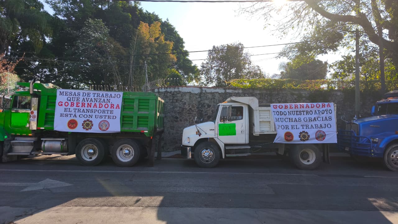 Esta mañana, transportistas de carga se dieron cita en la avenida Morelos y en la sede del Congreso local para externar su apoyo a la gobernadora Margarita González Saravia, en el marco de la entrega de su Primer Informe de Gobierno.