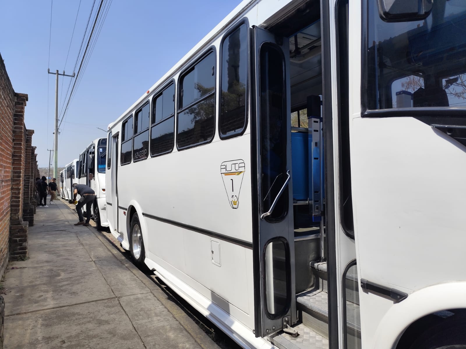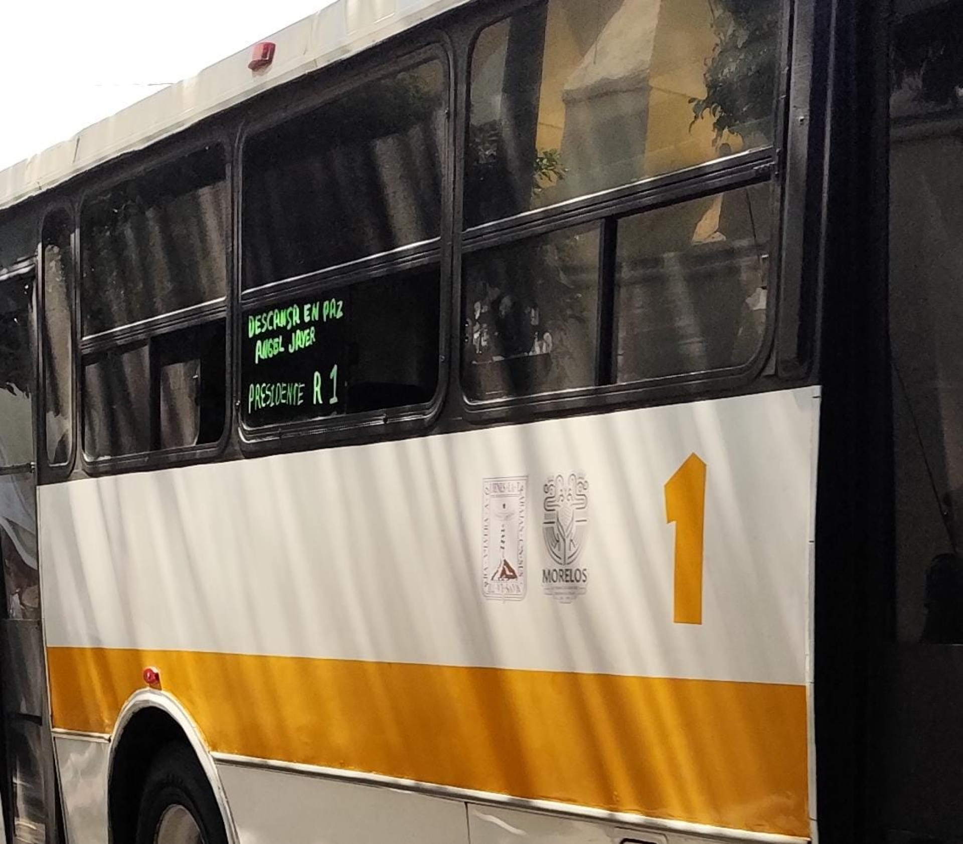 Las unidades llevan mensajes de consuelo a la familia del líder transportista fallecido, después se dirigirán al panteón de Santa María, donde será sepultado Jayer Escobar.