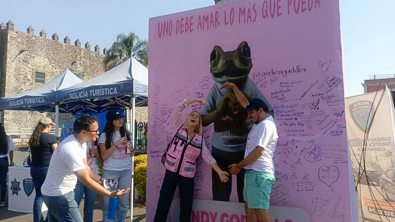 La diputada local Andrea Gordillo Vega instaló un módulo de fotos por el Día del Amor y la Amistad, frente a la explanada del palacio de Cortés, este viernes en el centro de Cuernavaca.