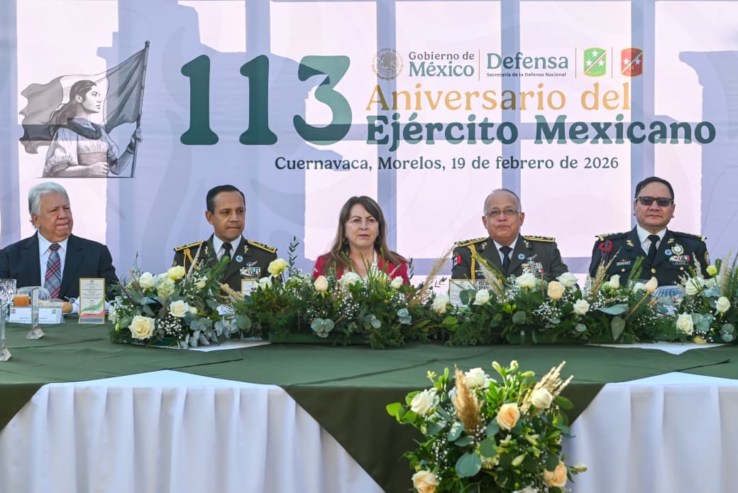 Esta mañana, la gobernadora Margarita González Saravia asistió a la ceremonia conmemorativa por el 113 aniversario del Ejército Mexicano, donde refrendó el compromiso de su administración de continuar el trabajo coordinado con las fuerzas armadas para garantizar la paz, seguridad y bienestar de las y los morelenses.