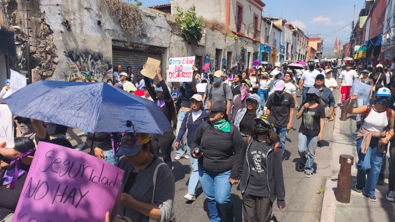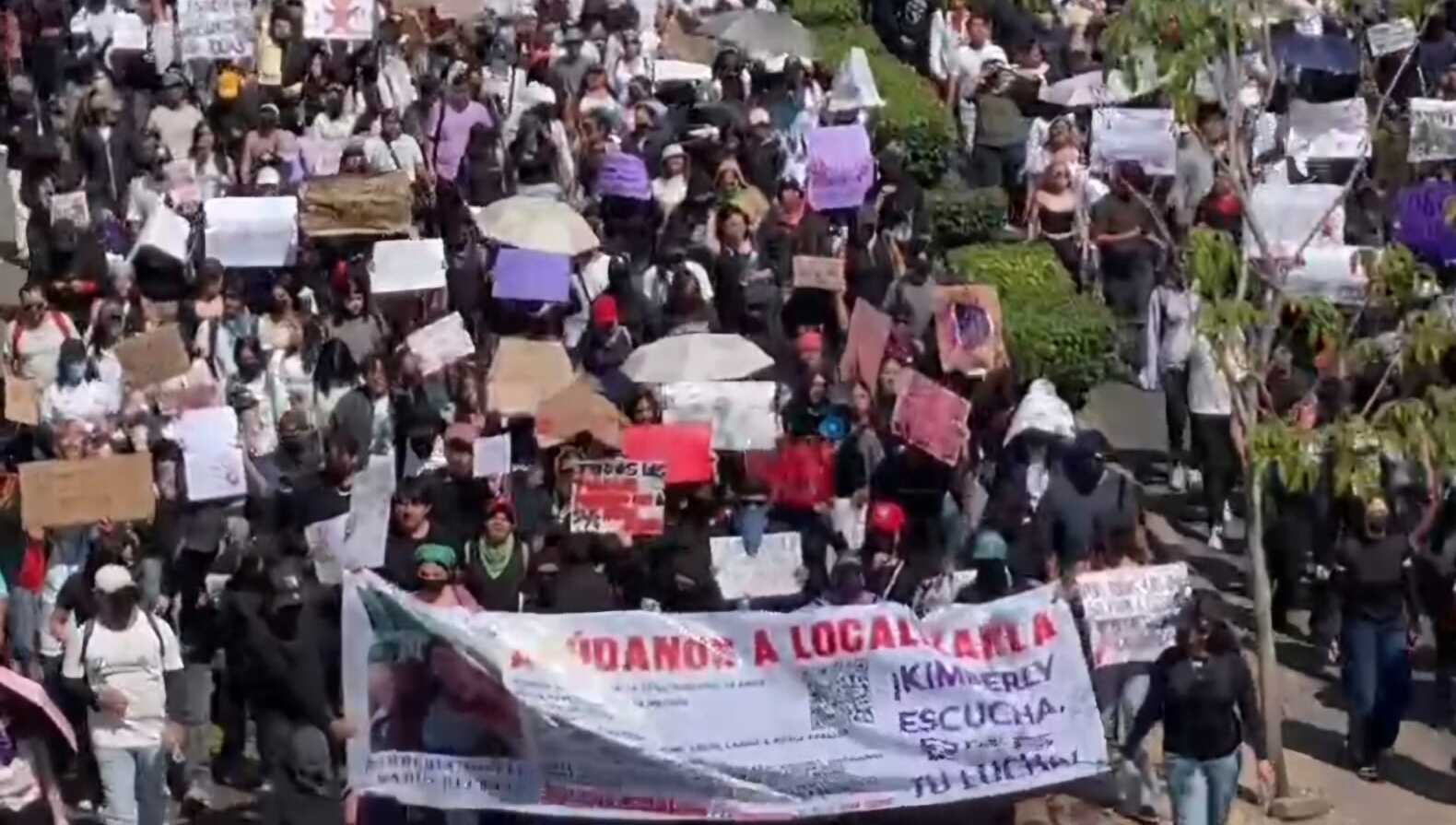 Estudiantes de la Universidad Autónoma del Estado de Morelos (UAEM) marchan en un contingente que inició su movilización desde la casa de estudios hacia el zócalo de Cuernavaca, a fin de reclamar seguridad para la comunidad universitaria y justicia para su compañera Kimberly Joselin Ramos Beltrán.