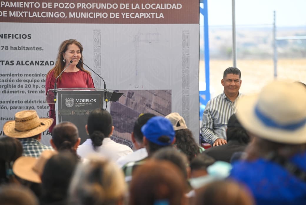 En Mexquemeca, la mandataria morelense destacó que estas acciones derivan de una labor conjunta con el Gobierno de México y el ayuntamiento: “Todo el tiempo estamos trabajando de manera coordinada en el estado de Morelos. Tenemos que cuidar esa agua. Nos da mucho gusto que ustedes ya la puedan tener y que nos haya tocado juntos inaugurar este pozo”.