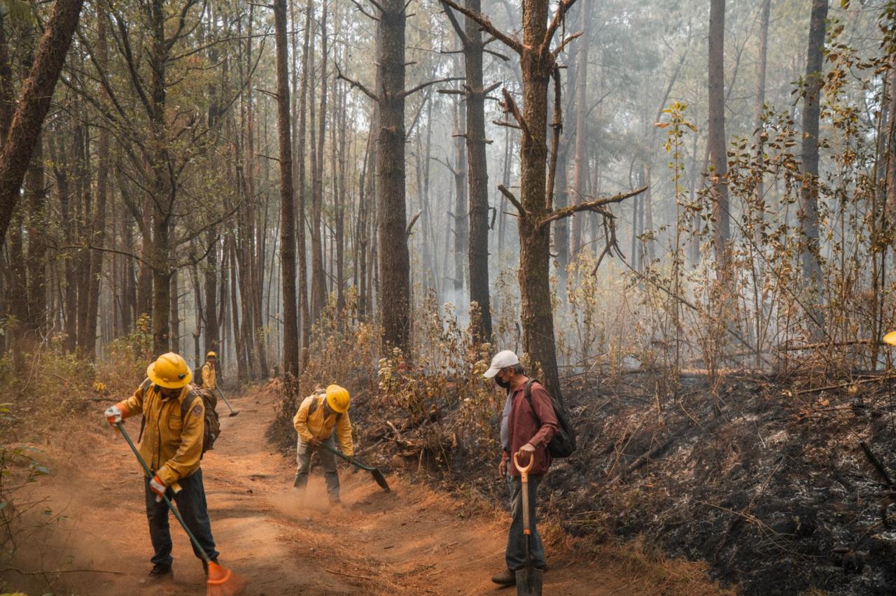 Actualmente, las acciones se concentran en zonas con presencia de material combustible pesado, derivado de tala y cambio de uso de suelo, estas condiciones incrementan el riesgo de reactivación, debido a la caída de árboles que continúan ardiendo en pie y a la generación de material rodante y pavesas.