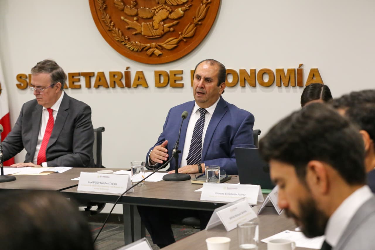En este marco, el titular de la Secretaría de Desarrollo Económico y del Trabajo (SDEyT), José Víctor Sánchez Trujillo, sostuvo una mesa de trabajo con el secretario de Economía del Gobierno de México, Marcelo Ebrard, acompañado por 29 representantes del sector productivo de la entidad.