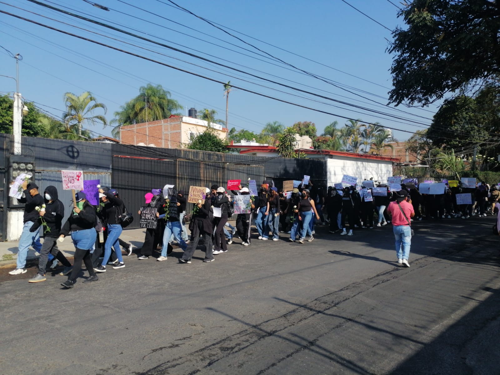 Este viernes se lleva a cabo una marcha de estudiantes de la Universidad Autónoma del Estado de Morelos (UAEM), en la zona del centro universitario Los Belenes, para exigir justicia por los feminicidios de Kimberly Joselin y Karol; asimismo llevan a cabo un bloqueo en la avenida Plan de Ayala.