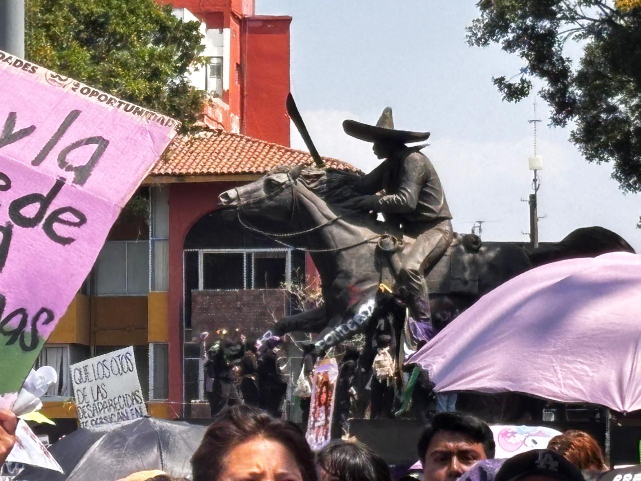 Este domingo, al llegar la marcha del 8M al centro de la ciudad, el bloque negro lanzó petardos a la fachada del palacio de gobierno y rocas a las vallas que recubren la sede oficial, además de bombas molotov a columnas y piedras a ventanas; de igual modo, las manifestantes llevaron a cabo pintas en el monumento ecuestre a Emiliano Zapata.