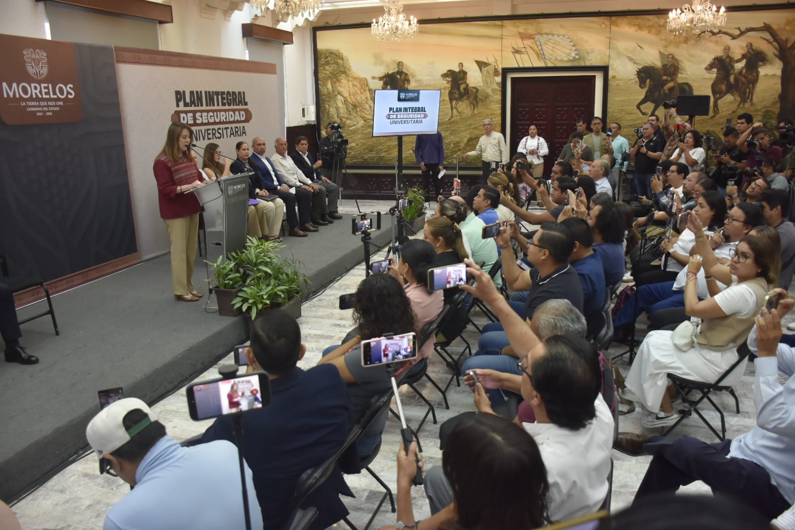 Esta mañana, la gobernadora Margarita González Saravia, junto con su gabinete, presenta el "Plan Integral de Seguridad Seguridad Universitaria", el cual contempla acciones de vigilancia, atención y prevención.