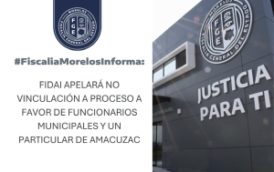 El Ministerio Público especializado de la Fiscalía de Investigación de Delitos de Alto Impacto (FIDAI) apelará ante la instancia judicial correspondiente el auto de no vinculación a proceso que una jueza de control otorgó a Patricia “N”, sindica municipal; Azucena “N”, regidora; y Alejandro Bladimir “N”, tesorero del Ayuntamiento de Amacuzac, así como Carlos “N”, aprehendidos en días pasados por el delito de extorsión agravada.