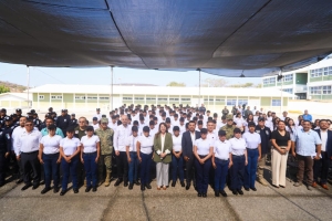 En el evento, realizado en la Academia Estatal de Estudios Superiores en Seguridad (AEESS), la mandataria, acompañada por el secretario de Gobierno, Edgar Maldonado, expresó: “Quiero agradecer a todas y todos quienes han decidido cursar esta importante carrera policial, que valoramos como sociedad y desde el Gobierno. Es una profesión que requiere vocación, entrega, compromiso y un profundo sentido de servicio hacia la ciudadanía y nuestro estado”.