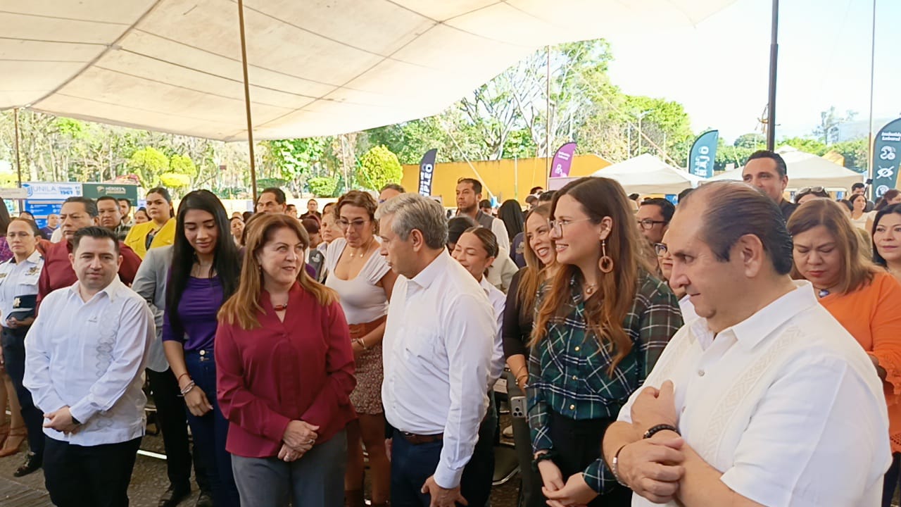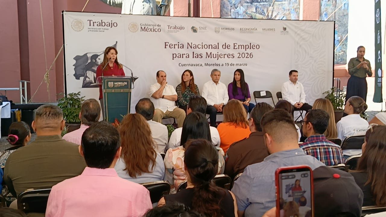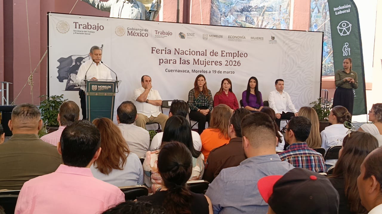 La gobernadora Margarita González Saravia junto con el alcalde capitalino José Luis Urióstegui Salgado inauguraron la Feria Nacional del Empleo 2026, en el parque Alameda de Solidaridad en Cuernavaca, la cual estará de nueve de la mañana a dos de la tarde; participan 45 empresas y ofertan 600 vacantes.