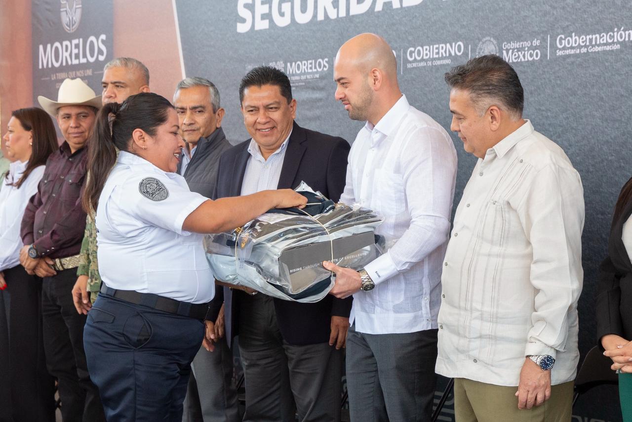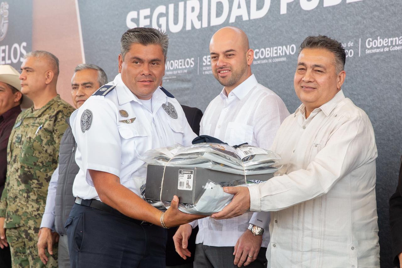 Durante el evento, se hizo entrega simbólica de uniformes a elementos de la Policía, donde se resaltó que es muestra y reconocimiento al trabajo que hacen día a día para mantener la paz y seguridad en la entidad.