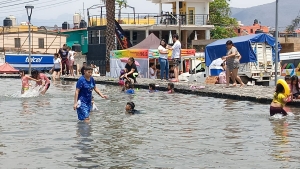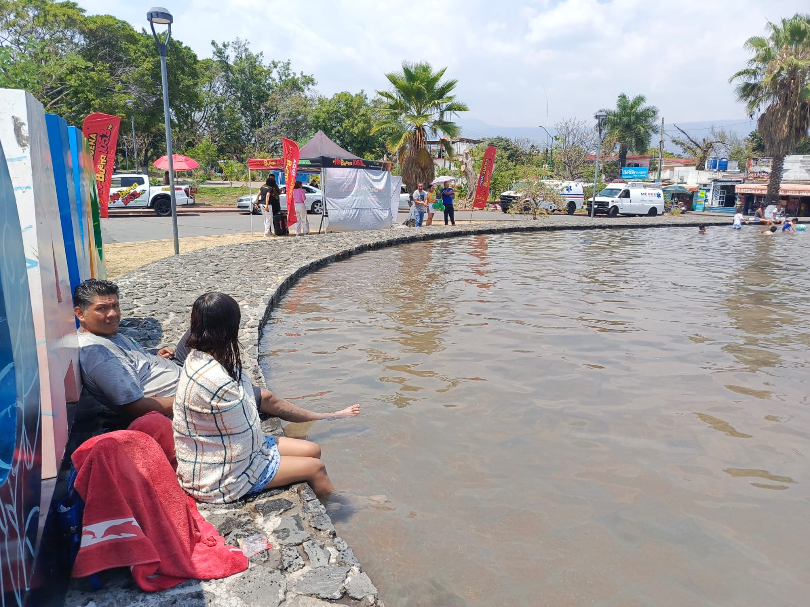 Este viernes, familias morelenses acudieron a la fuente de Civac en el municipio de Jiutepec para refrescarse y convivir durante el actual periodo vacacional de Semana Santa.