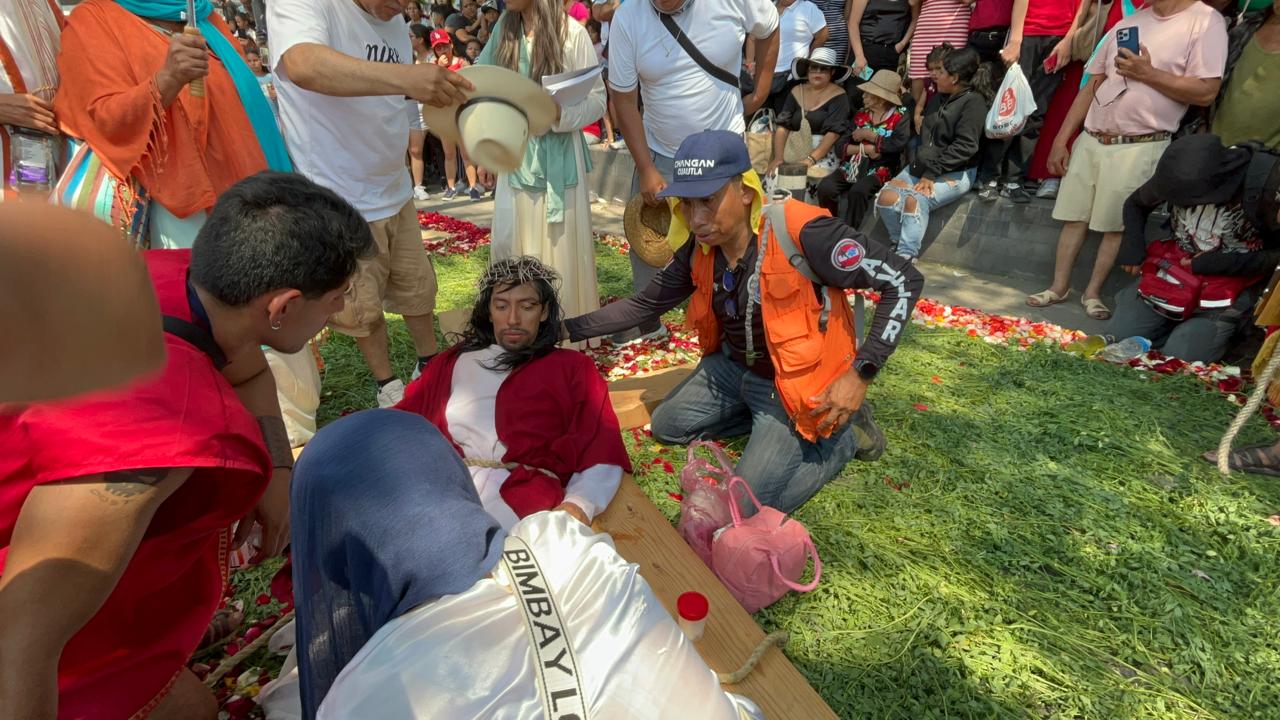 Cuerpos de seguridad y de atención a emergencias resguardaron todo el evento, además de que tuvieron que atender al actor principal por el desgaste físico que le impedía avanzar. A pesar de esos inconvenientes, todo concluyó con saldo blanco.